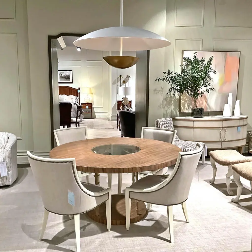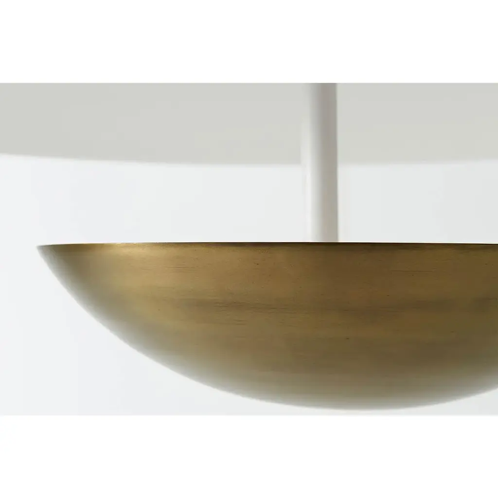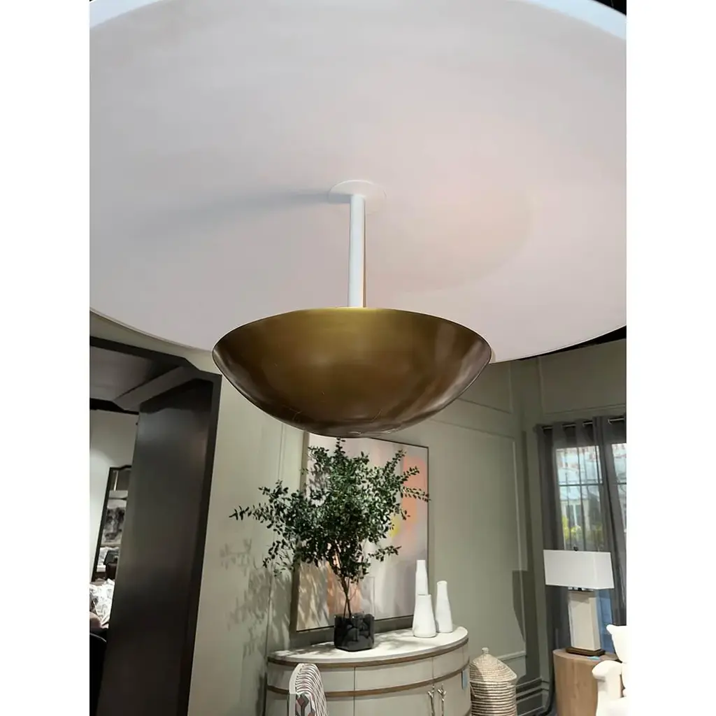Bowl chandelier with a textured white composite canopy above a bronze-finished steel bowl. With a painted chain and ceiling canopy. Dimensions: 43" W x 43" D x 31" H
