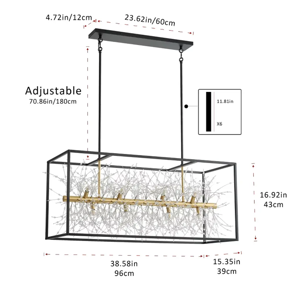Add luxury and sparkle to your space with this chrome crystal branch chandelier. Featuring 12 G9 LED lights and a shimmering rectangular design, this ETL-certified fixture is perfect for dining rooms, kitchen islands, and modern interiors.