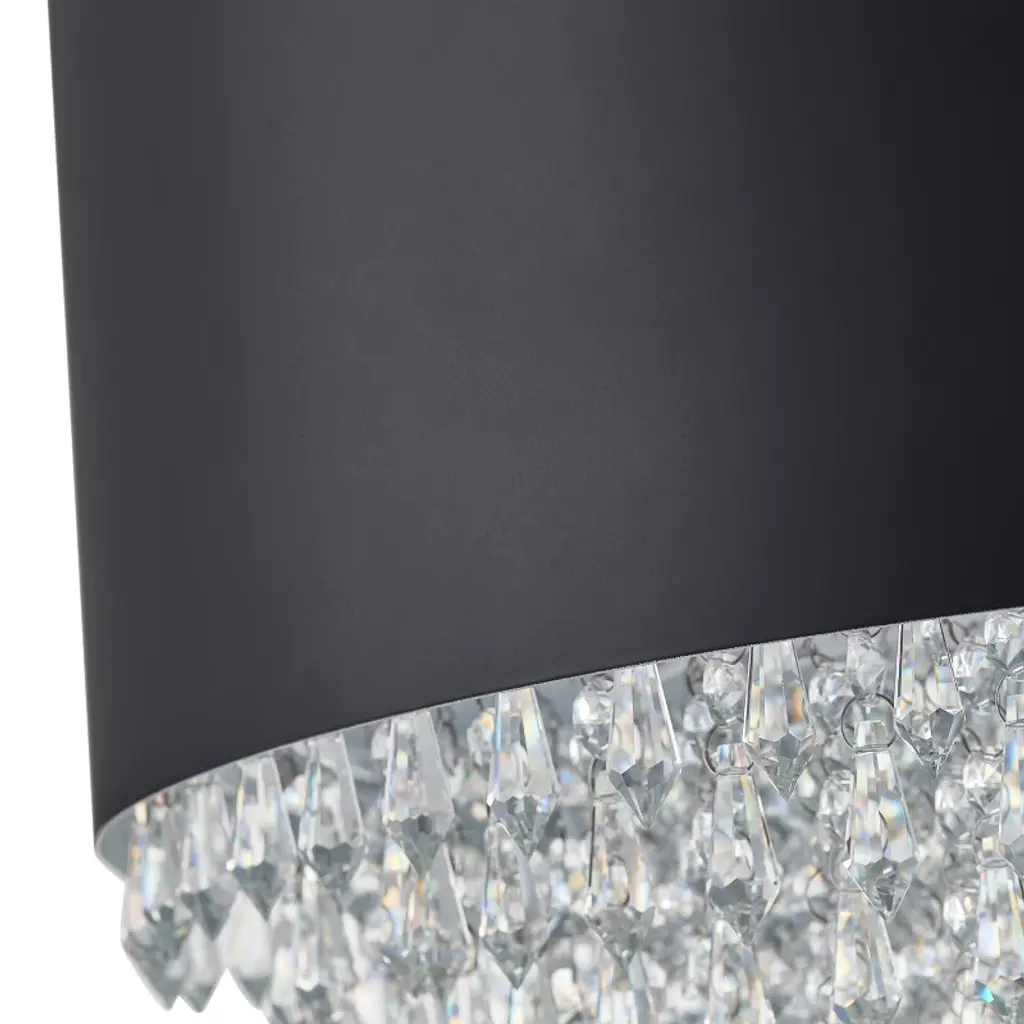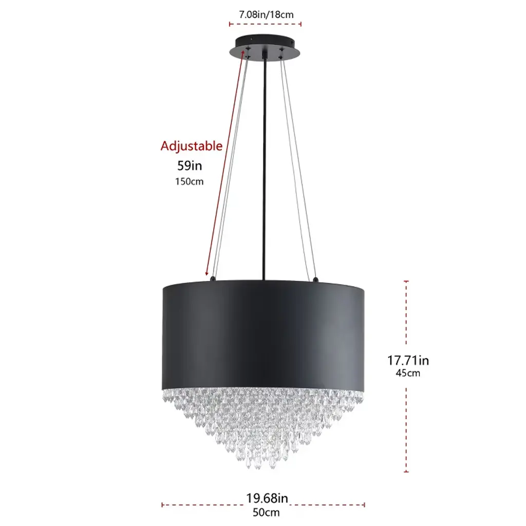 Bring modern luxury to your space with this 4-light black drum chandelier. Featuring a matte iron frame and sparkling crystal accents, this ETL-certified pendant light adds elegance to dining rooms, bedrooms, and entryways. Compatible with E12 base bulbs (40W max), it's both stylish and safe—perfect for any contemporary or glam setting.