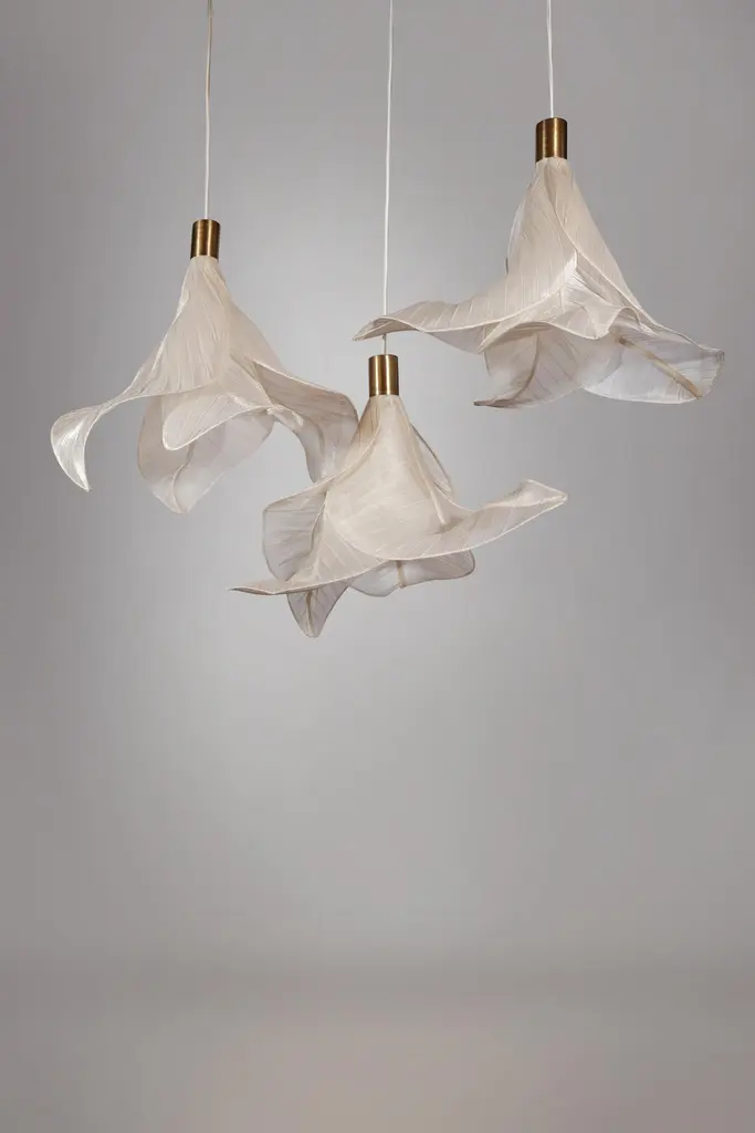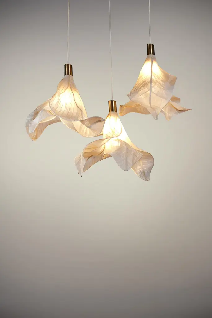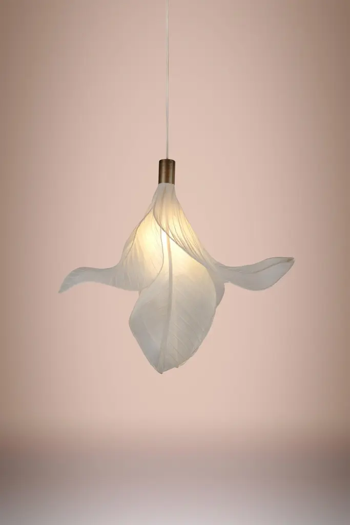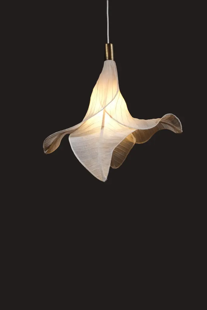 Sirenetta Modern Fabric Collectible Sculptural Pendant Light from Studio Mirei represented by Costantini DesignDimensions are 8" Dia x 26" H as shown.Sirenetta, inspired by a sea siren. When the sun hits the horizon, imagine it gracefully swimming to the water surface to catch a glimpse of her lover. This suspension lamp is made from banaca (banana-abaca) textile, sculpted to evoke undulating shapes that remind us of the mythical little mermaid.Production Lead Time: 8 weeks.Costantini is thrilled to announce US representation of Italian-based STUDIO MIREI.Mirei is a Milan-based multidisciplinary designer who started her career in her birth place, the Philippines. Working from her roots has exposed her to the world of traditional manufacturing and production of furniture, where everything is made by hand. This environment exposed her to the beautiful world of artisan crafts, but then gave her the yearning to explore state-of-the-art techniques that come from the western world. Graduating from Politecnico di Milano in 2017 with a degree in Design and Engineering has given her more experience in the technical point of view. Her work spans product design, interior design, creative consultancy and art direction.About Costantini Design Costantini has been a trusted source for custom furniture, objects and lighting for a global client base since 2002. Its founder and owner, William Stuart, is a designer and artist who began his career as a multimedia artist and sculptor, practices which continue to inform the work. With a studio showroom in New York and a team of artisans at their own workshop in Buenos Aires, the Costantini team is able to connect artisans and artists with acclaimed clientele around the world. Its artisans work across many varied materials such as bronze, solid wood, fiberglass, steel, plaster, goatskin, leather, rush, iron, marble, sheepskin and more. Their work has been featured in publications such as Architectural Digest, Galerie Magazine, the Wall Street Journal, Interior Design Magazine, Luxe, and more. Visit their New York or Buenos Aires locations by appointment.