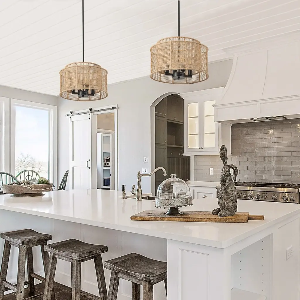 Modern Farmhouse Drum Chandelier, Handwoven Natural Rope Pendant Light For Bedroom Or Entryway