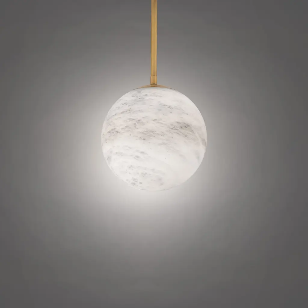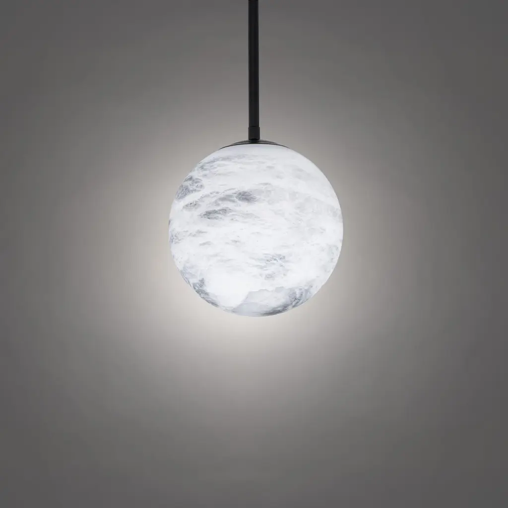 Embracing the art of light, a natural Spanish Alabaster orb shimmers and casts an entrancing celestial glow.Features:Dimensions:Electrical Specifications: