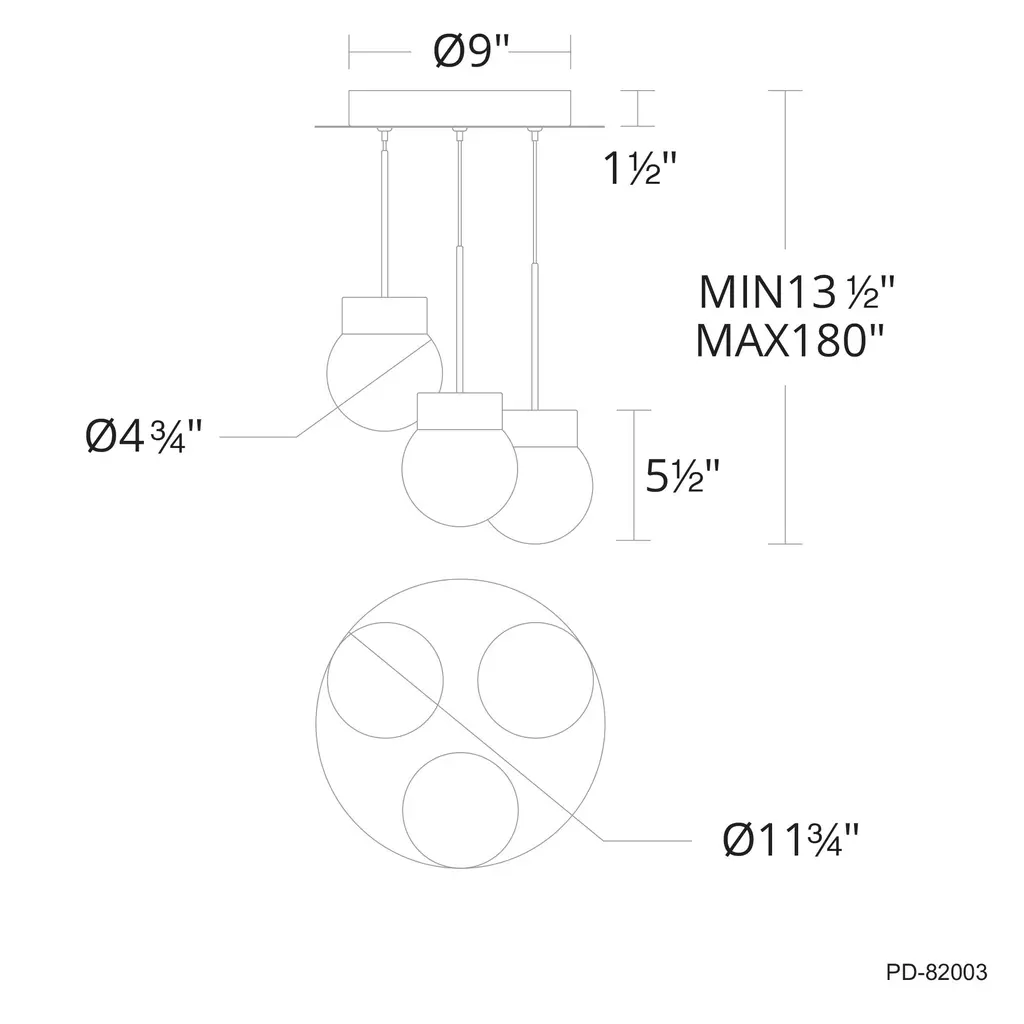 Like a minimalist take on a crystal ball, these pendant's laser etched orbs are installed in various arrangements on one canopy to create an artful statement as well as deliver ample lighting to spaces throughout a home or business.Features:Dimensions:Electrical Specifications: