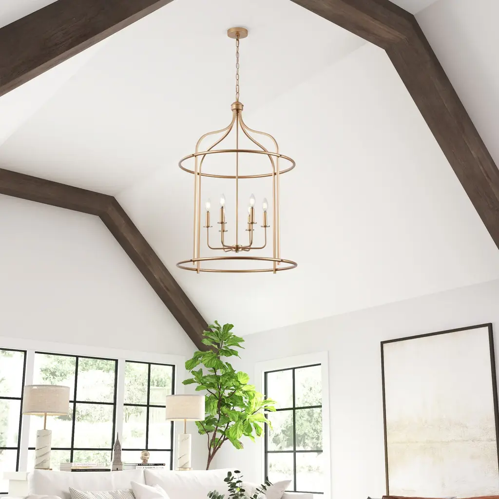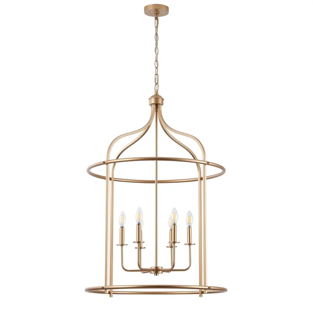 Modern Pendant Light: The modern pendant light features a premium metal frame with painted gold finish, highlighting its vintage retro charm and adding a modern touch and minimalist style perfect for any home decor.Quality Assurance: High-quality metal materials were used to craft the pendant light. All products in the factory have to undergo rigorous safety monitoring, to ensure quality and safety, which is beautiful, corrosion-resistant, and durable for a long time.Easy to Assemble: Don't worry about the installation difficulty. All necessary accessories are included, and a simple, step-by-step instruction guide is provided, taking just minutes to give your home an upgrade! If you need any help, please feel free to contact us.ETL Listed & Bulb Requirement: ETL Listed for your safety. The pendant light is a built-in standard E12 socket, suggest using a dimmable E12*6 base bulb (Max 40W, 120V), it could be fully dimmable and compatible dimmer switch. Bulbs and dimmer switch not included.Widely Used: Industrial with a modern feel, this black metal frame pendant light is perfect for wide application, kitchen island, dining room, living room, hallway, entryway, foyer, stairway, farmhouse, bars, cafes, hotels, and restaurants, etc.