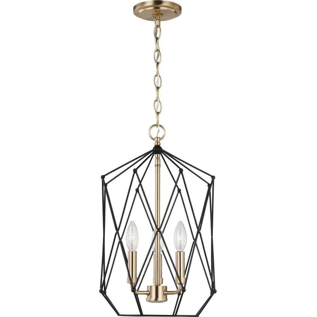 Modern Gold Geometric Pendant Light, 4-light Open Cage Chandelier For Dining Room Or Foyer