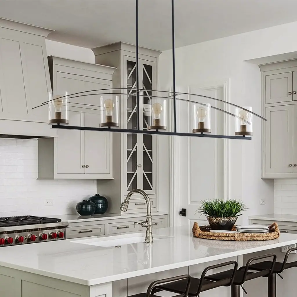 Modern Industrial 5-light Linear Island Pendant Light With Clear Glass Shades For Kitchen Or Bar