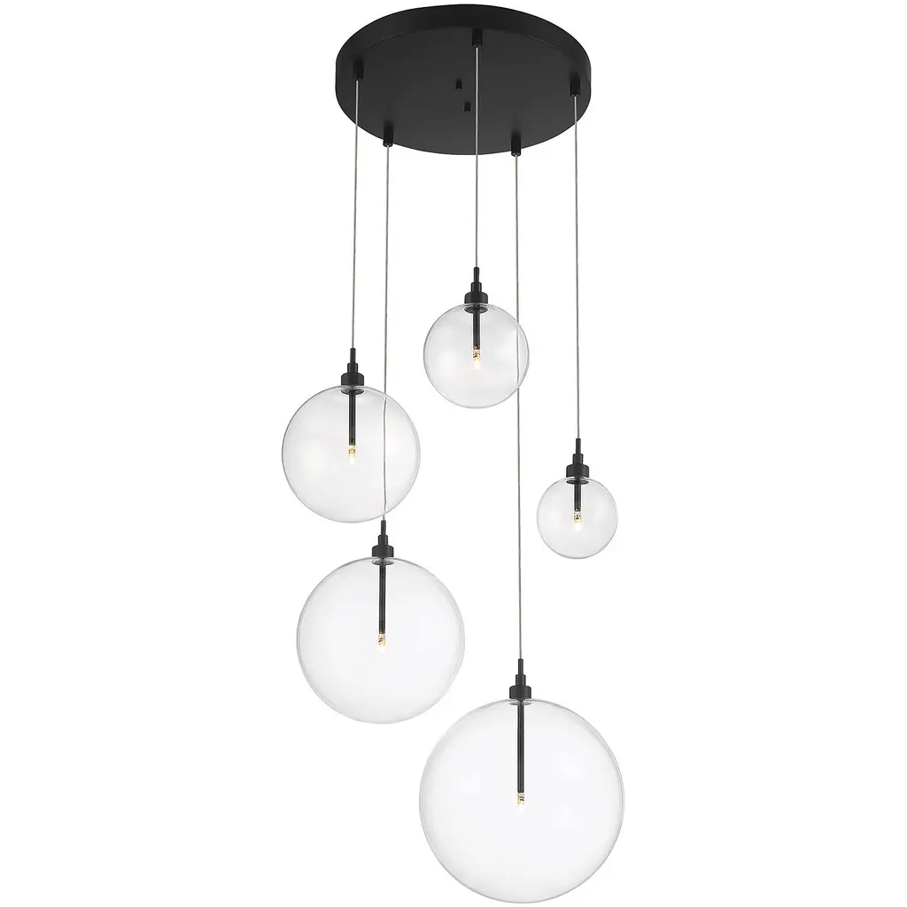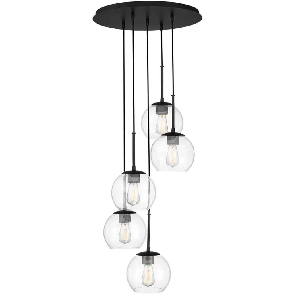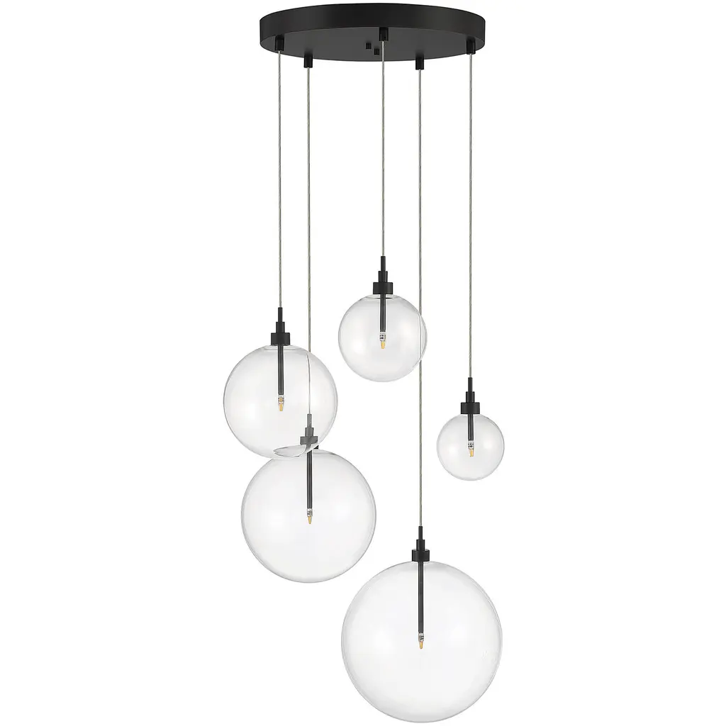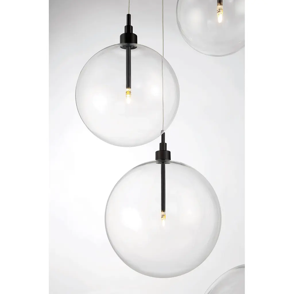 This Meridian 5-light pendant showcases clean, minimal styling with hand-blown orbs of clear glass and an oil rubbed bronze finish. You can adjust the hanging height of each light for total customization Bi-pin T4 LED bulbs included.