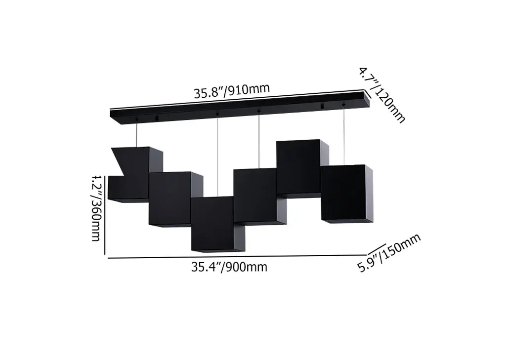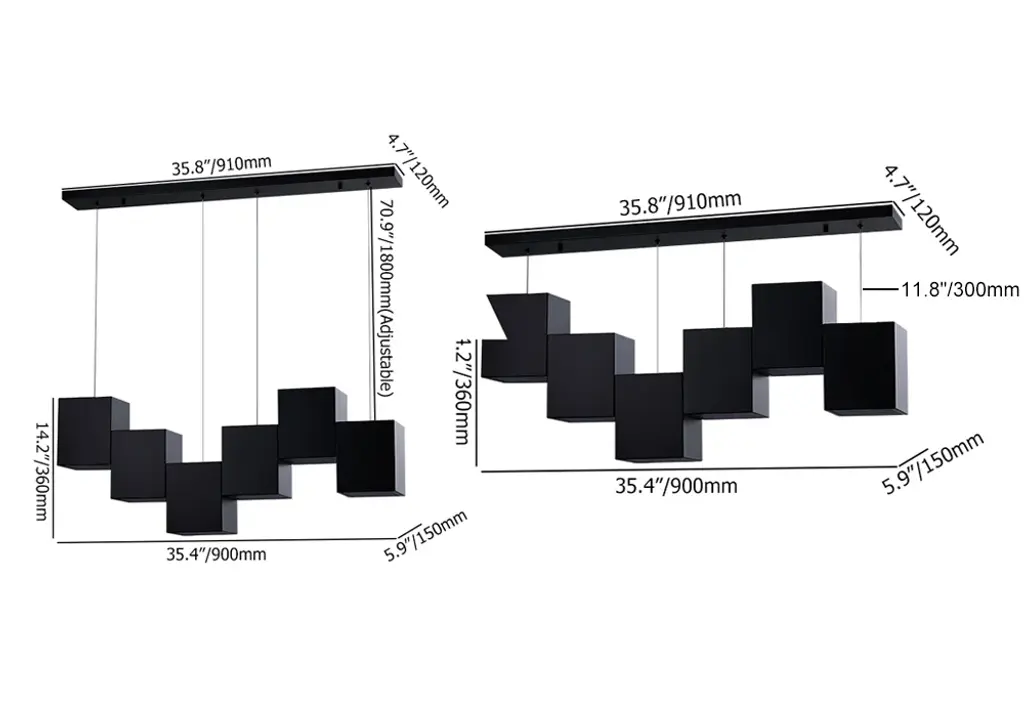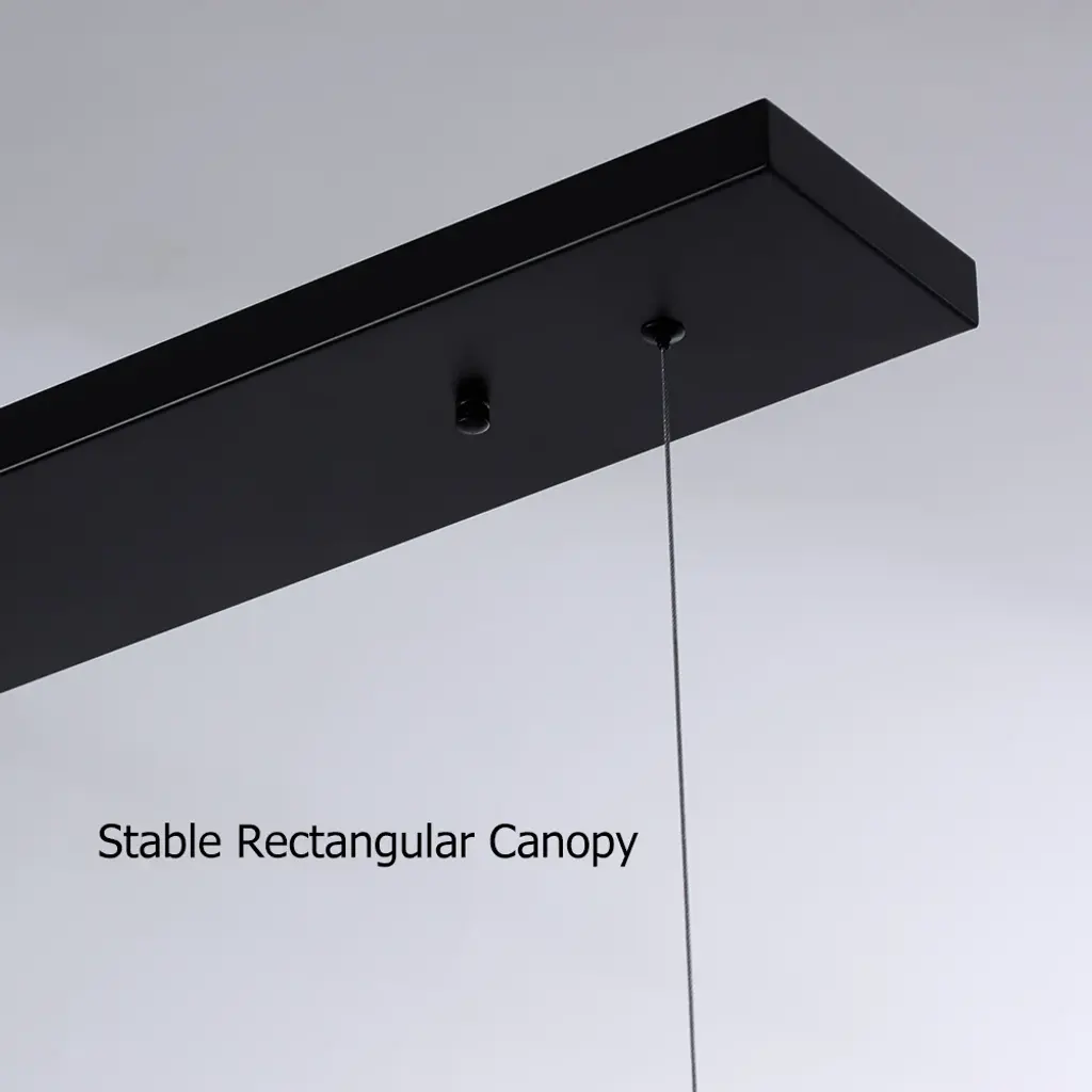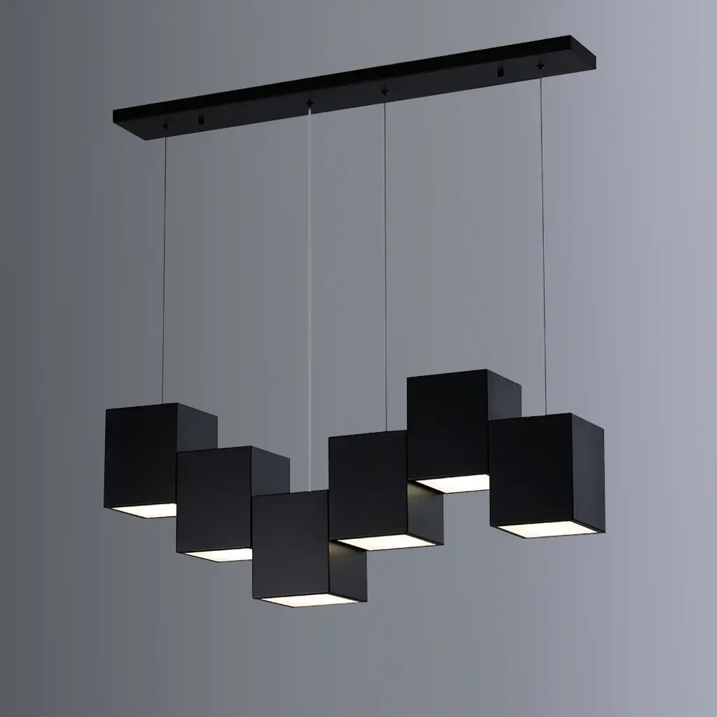 Crafted with quality, made by metal and acrylic, this linear kitchen island light features a rectangular base and six black square-shaped shades. Each of the six fixtures accommodates a 60W bulb (not included). The 71" wire is adjustable, and the fixture can be hung at a customized height. Believing, this 6-light pendant will bring brilliant style to your kitchen or dining room.