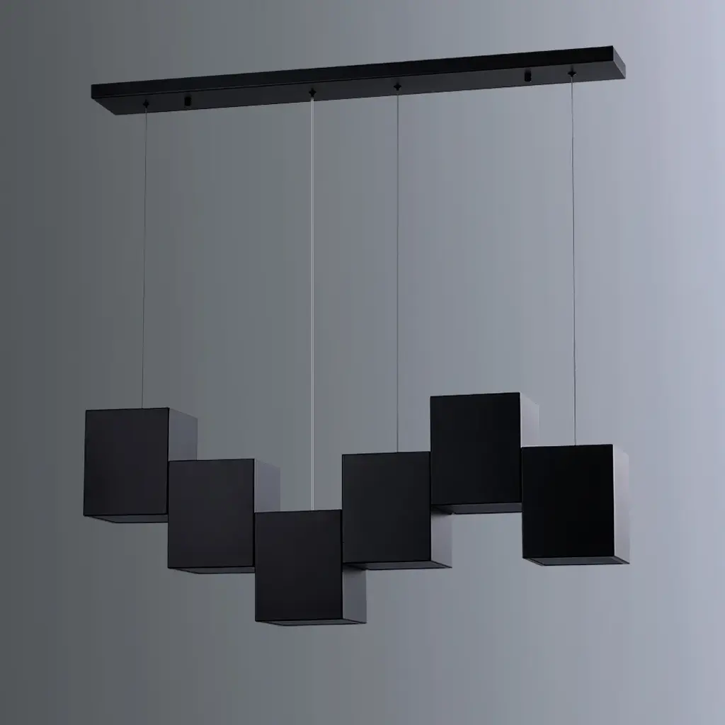 Modern Linear Black Kitchen Island Light 6-Light Square Pendant Light