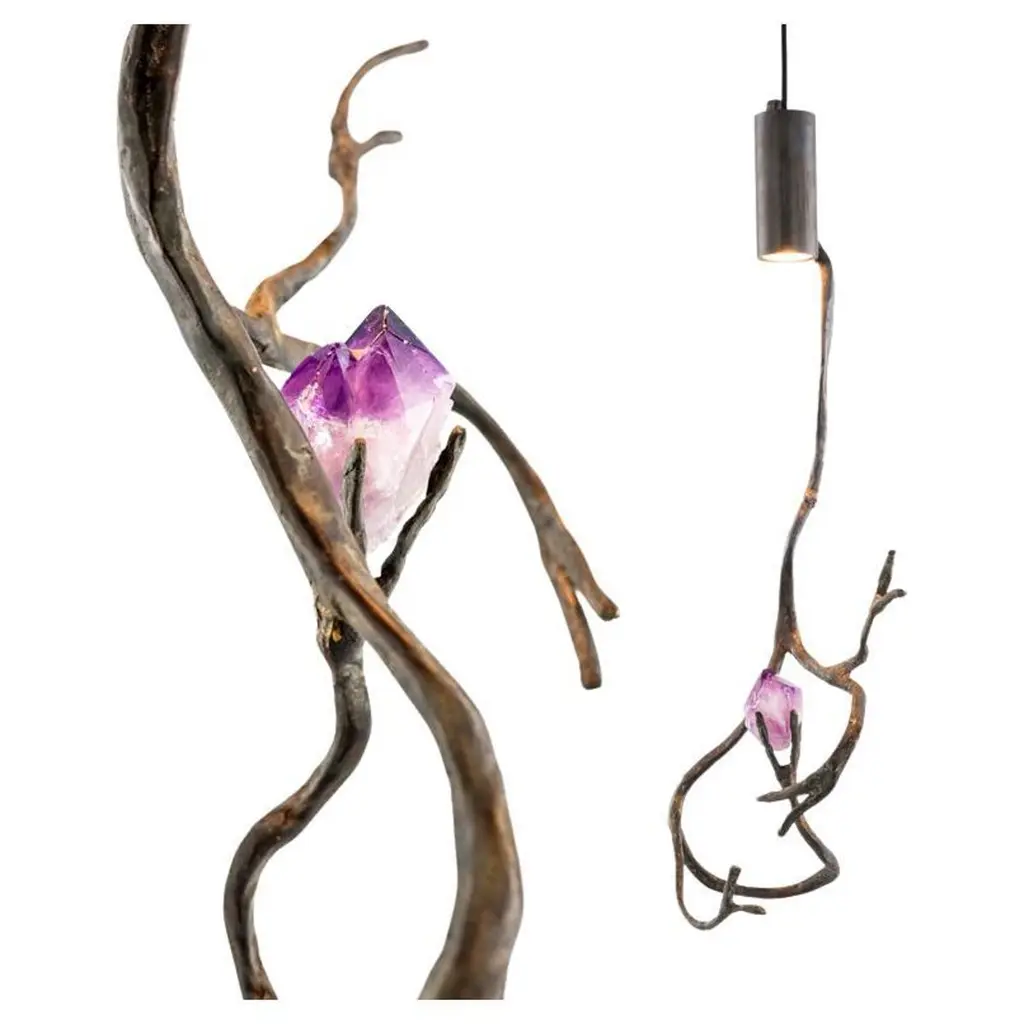 Orpheus Porcelain Rose Of NymphenburgThe handcrafted porcelain rose is from Porzellan Manufaktur Nymphenburg, creating the finest porcelain in since 1747. Invited by Nymphenburg to create a new concept, William Brand sought to combine European heritage with a contemporary sculpture from his hands.The delicate porcelain rose, made to perfection on the Nymphenburg palace ground just outside Munich, is embraced by casted bronze and protects it from the passing of time. The Orpheus is meant to last beyond a single lifetime and passed on to the next generation. It is created in a limited edition.One of the most legendary poets and singers in Greek mythology is Orpheus. He sang so beautifully that he touched everyone and all around him. The King and Queen were moved to tears, but also the birds, trees, and even the stones were hypnotized by his magical voice. We have found several objects of desire amidst the nymphs and trees and formed them into lighting sculptures. Other precious stones can also be sourced, upon request. Given the scarcity of these treasures, we will source the stones on a case-by-case basis for our clients: we are at the hands of what nature offers us.In addition to Orpheus Nymphenburg, William Brand crafted the Orpheus pendant, that holds in her hand precious stones from various mines around the world. Each with their unique story and power, we offer as a standard option for Orpheus, the precious stones Amethyst and Pyrite. The Orpheus Nymphenburg and Orpheus Precious Stones are cast in bronze in our own atelier. Custom dimensions and finishes are possible upon request.Upon receiving your confirmation, our atelier will start with the creation by hand of your ordered lighting sculpture. After your confirmation, we can no longer change the specifications of your order.Brandvanegmond, bve, lighting sculptures, modern lighting.