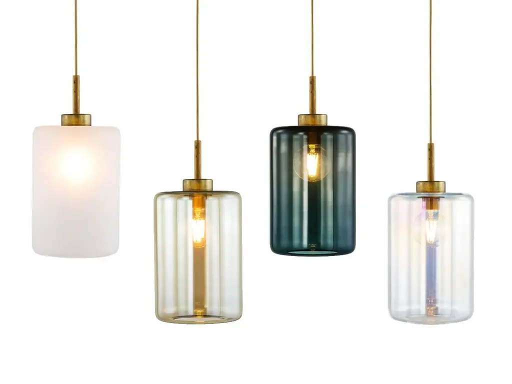 Modern Pendant With Colored Glass In A Brass Burnished Finish, Louise