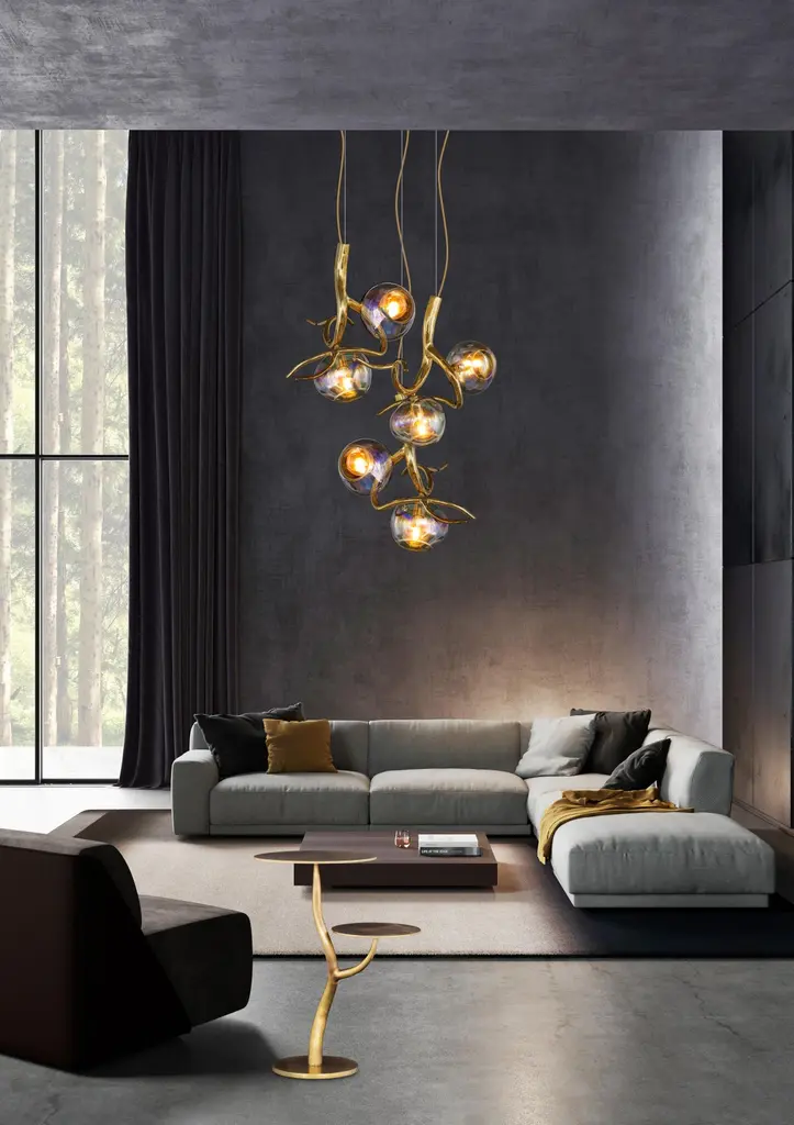 Named after the ancient Greek Goddess of dew, this Ersa modern pendant in a nickel finish with iridescent glass spheres offers light with a sculptural touch for every possible position or space. The Ersa pendant is available with one, two, or three mount-blown glass spheres – following the form of dewdrops on branches – and can be used as a single lighting piece or grouped together, creating a larger and more dramatic statement.Ersa, named after the ancient Greek goddess of morning dew, draws inspiration from that most magical moment of the day: the sunrise. Early morning, when the first light of day sends the darkness of the night away, we can see one of nature’s wonders on display: dew drops formed throughout the night. Just as the change of temperature on a surface creates dew, also new finishes and materials are born under shifting conditions. The iridescence on our glass, leading to the gradual change of color as the angle of view or illumination changes, radiates a stunning glow.The Ersa collection is available in chandeliers, pendants, flush mounts, floor lamps, and wall lights and sconces.The Ersa collection offers several finishes for you to discover: black matt, white matt, bronze, nickel, brass, and brass burnished. Standard the Ersa will be delivered with iridescent glass spheres. Other options are bronze translucent and clear glass spheres.Upon receiving your confirmation, our atelier will start with the creation by hand of your ordered lighting sculpture. After your confirmation, we can no longer change the specifications of your order.