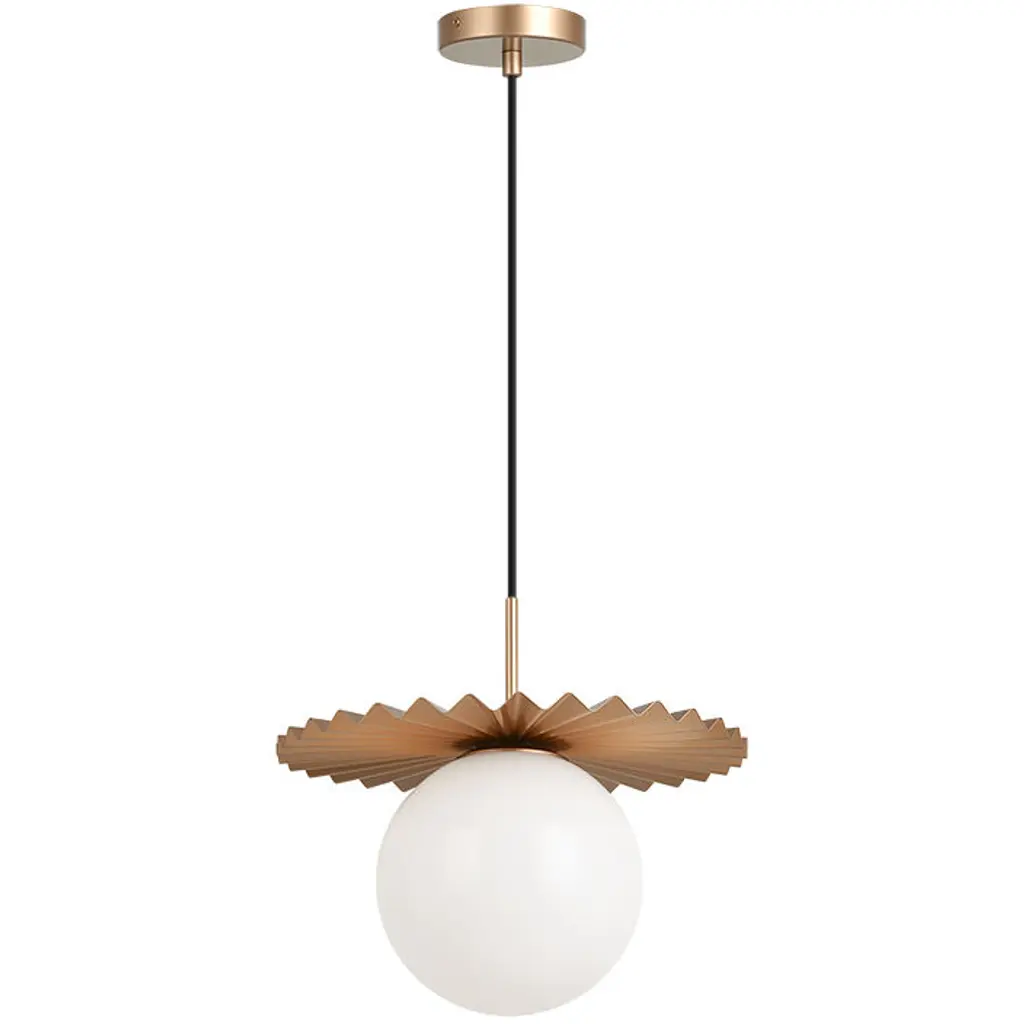 Modern Ruff 1 Light 15 Inch Matte Gold Pendant Ceiling Light In Matte Gold And Opal Glass