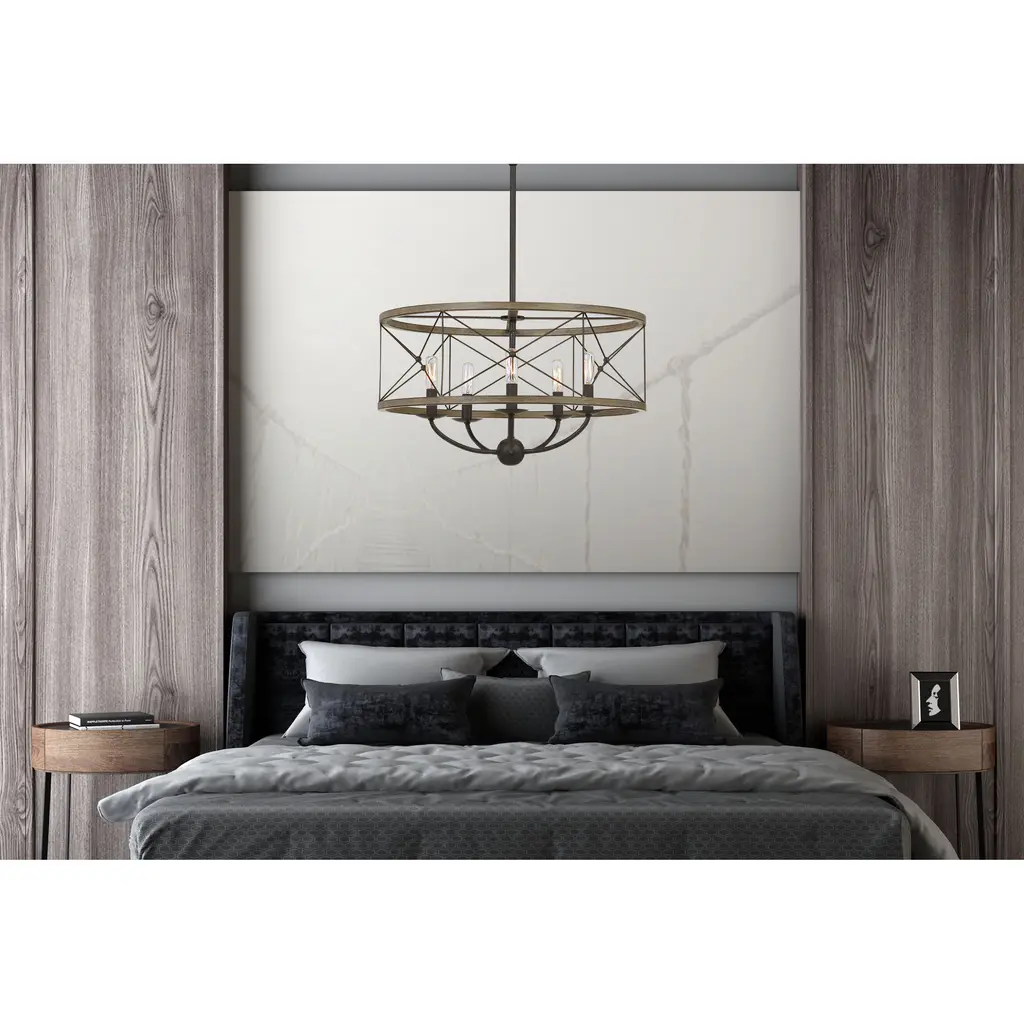 Modica 5 Light 22 Inch Distress Ivory And Iron Pendant Ceiling Light