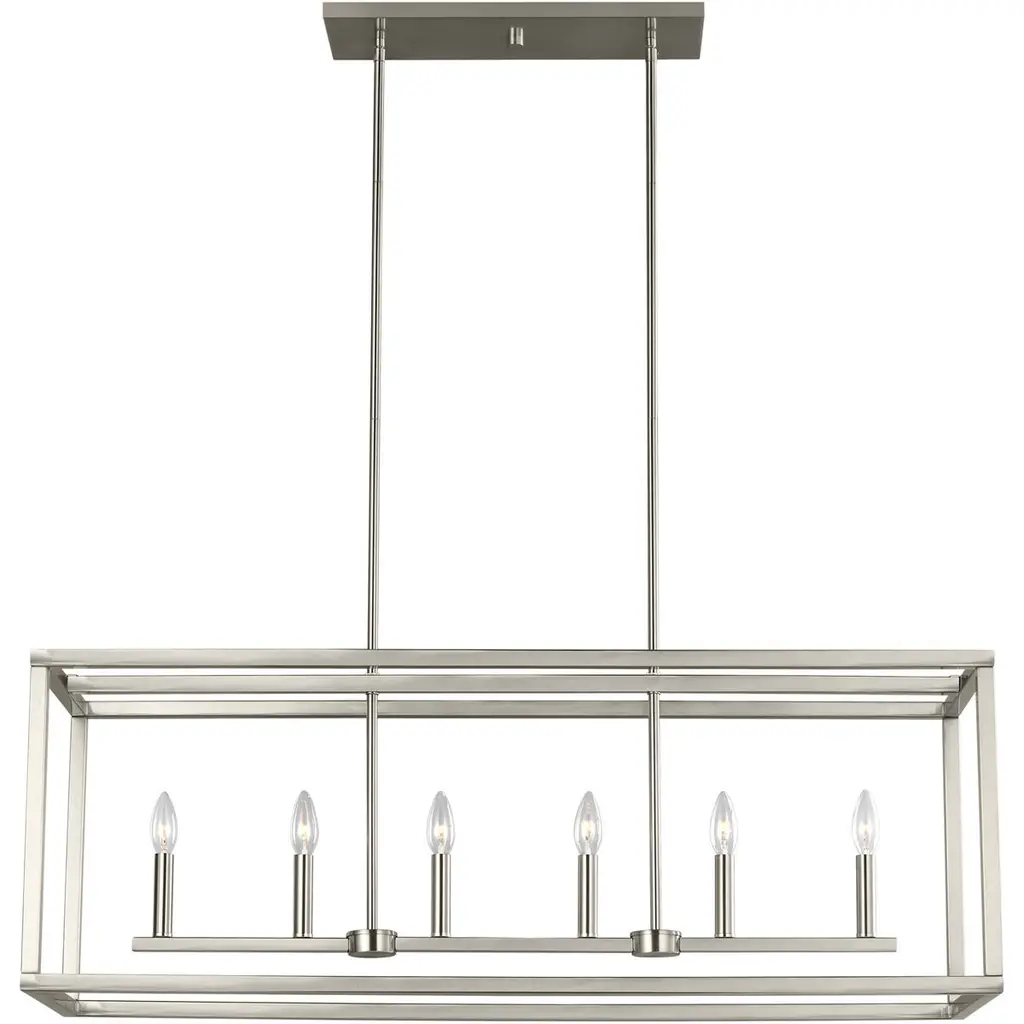 The Moffet Street six light linear chandelier in washed pine supplies ample lighting for your daily needs, while adding a layer of today's style to your home's d?cor. The Moffet Street series offers a distinctive take on a rustic theme. Built in broad steel frames with hand-applied finish that mimics natural wood. This combination of rustic and urban fits comfortably in a wide variety of environments. The sharp, squared lines of the frame complement a wide variety of settings. The collection includes eight-light foyer, four-light foyer, one- light wall sconce, and a six-light island fixture. The Moffet Street series is available in three beautiful finishes Washed Pine, Brushed Nickel and Satin Bronze All fixtures are California Title 24 compliant and damp rated for use in sheltered, damp environments.