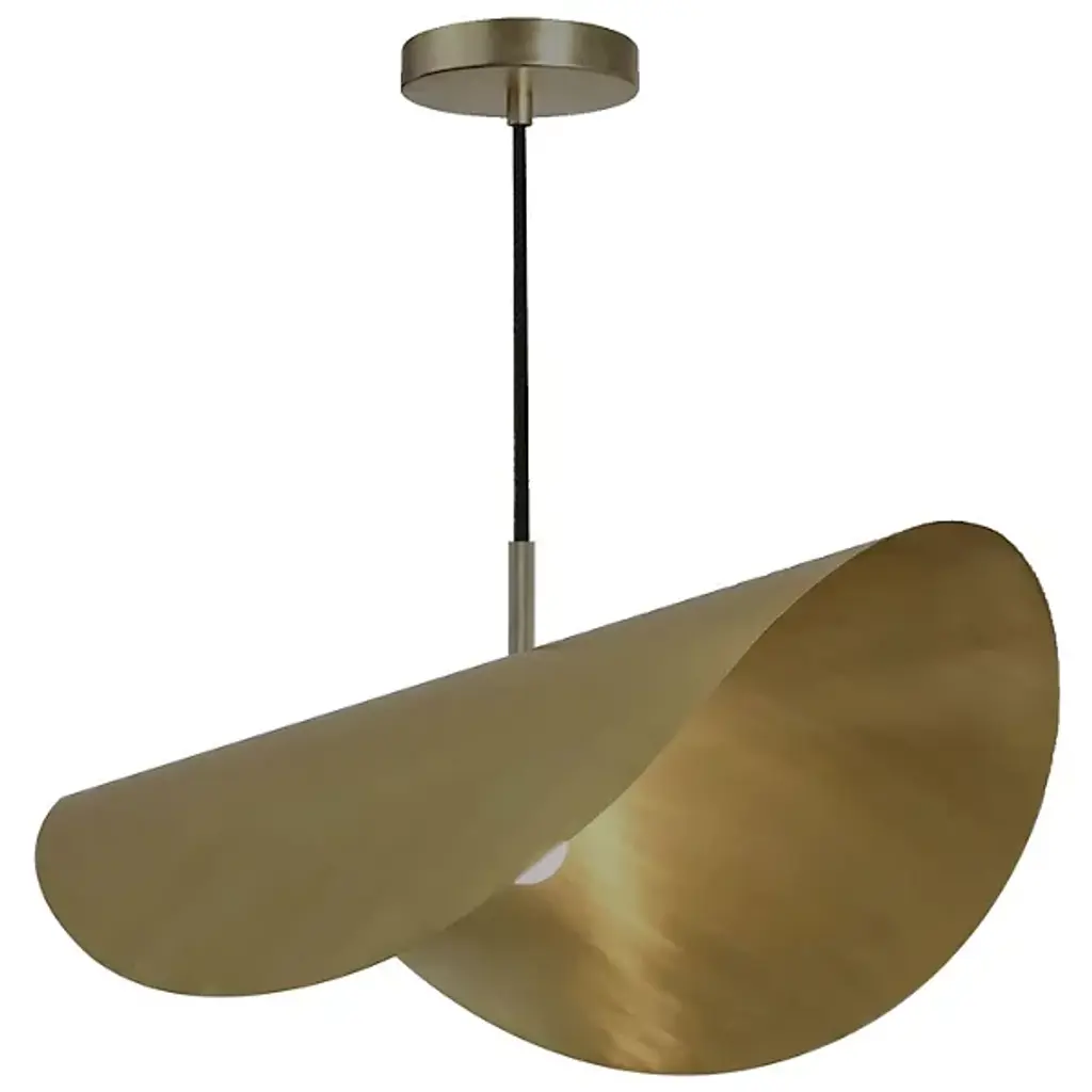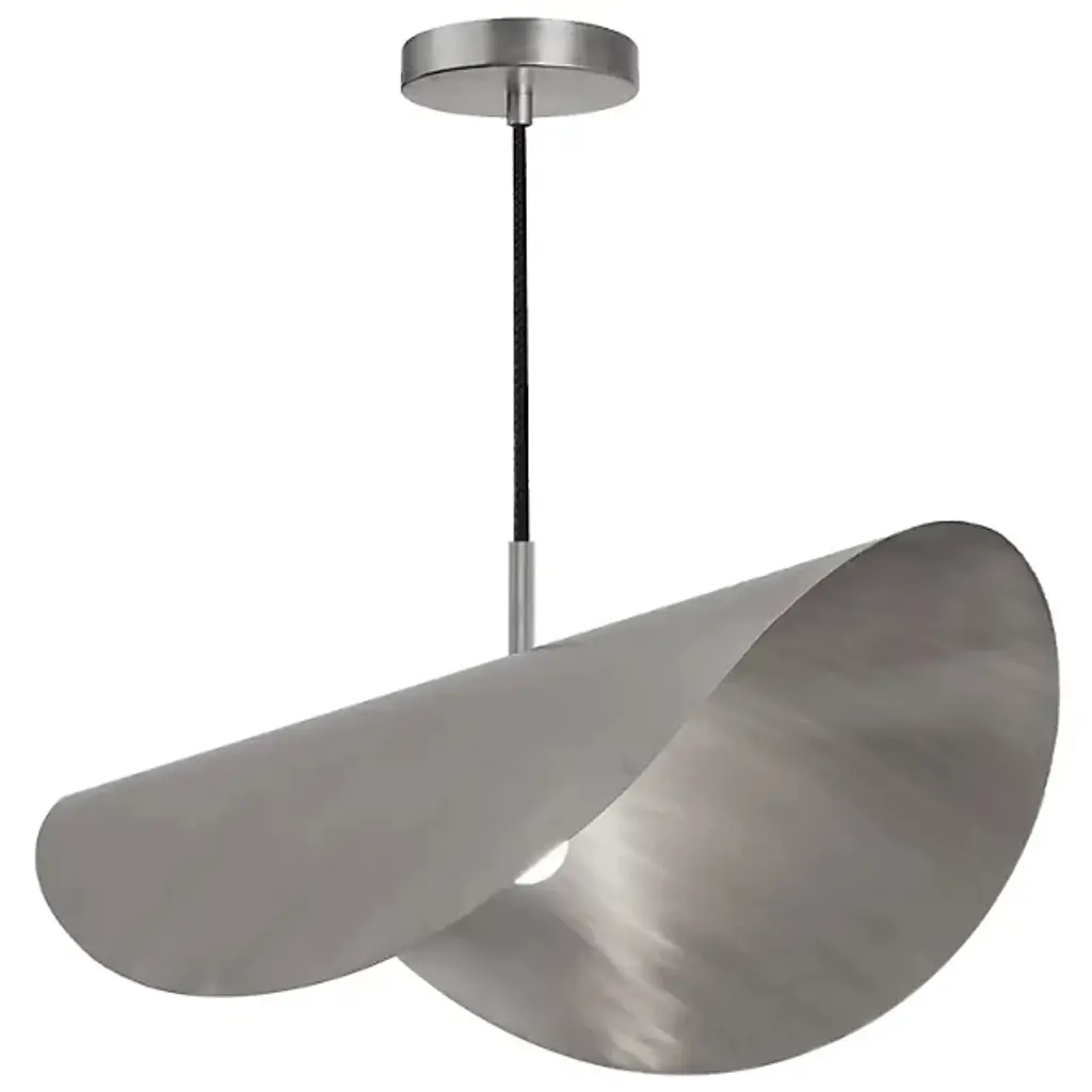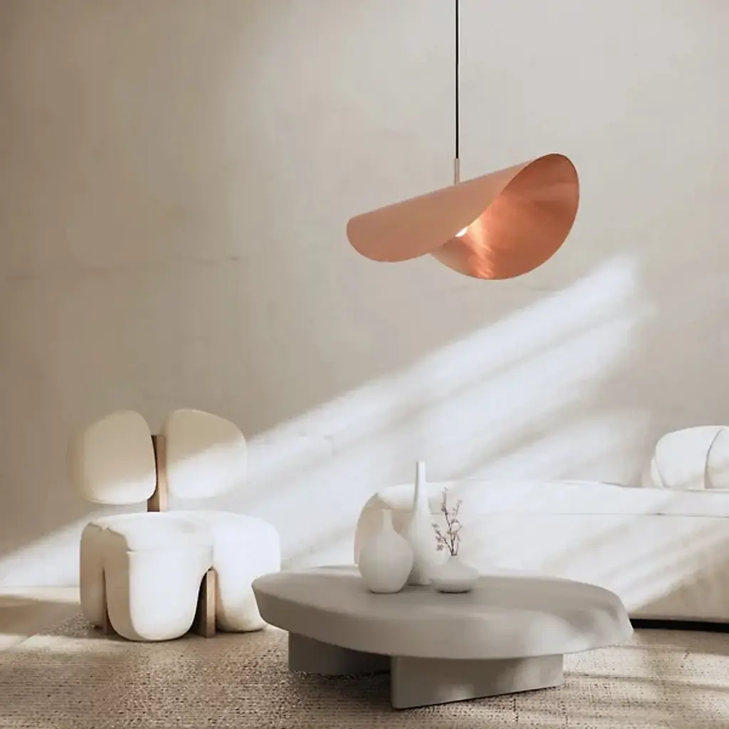 The Moja Pendant from Dounia Home matches traditional Moroccan craftsmanship with modern refinement. Handmade in Morocco, its gracefully curved metal shade echoes the flowing lines of a coastal landscape. A round canopy sends down a slim cable and stem, while the pendant’s disc-like shade gently reflects light below, creating a mix of direct downlight and soft reflected glow. Small imperfections in the hand-finished textures lend each piece unique character and warmth, infusing interiors with artisanal charm.