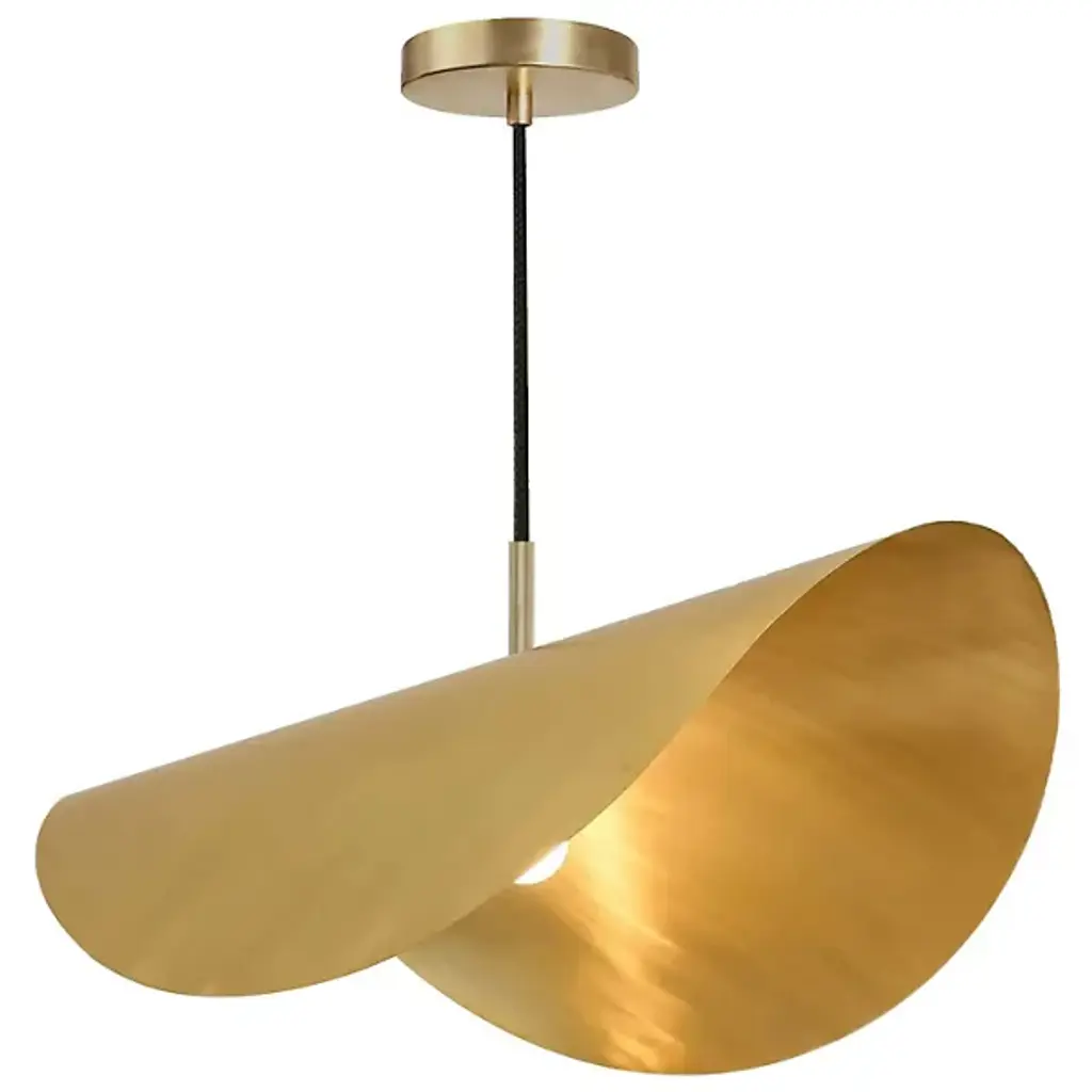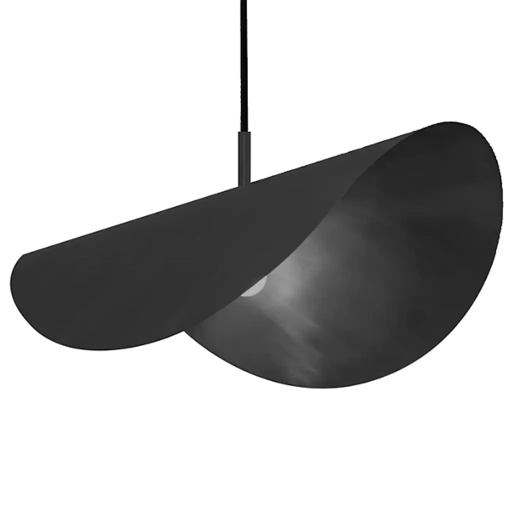 The Moja Pendant from Dounia Home matches traditional Moroccan craftsmanship with modern refinement. Handmade in Morocco, its gracefully curved metal shade echoes the flowing lines of a coastal landscape. A round canopy sends down a slim cable and stem, while the pendant’s disc-like shade gently reflects light below, creating a mix of direct downlight and soft reflected glow. Small imperfections in the hand-finished textures lend each piece unique character and warmth, infusing interiors with artisanal charm.