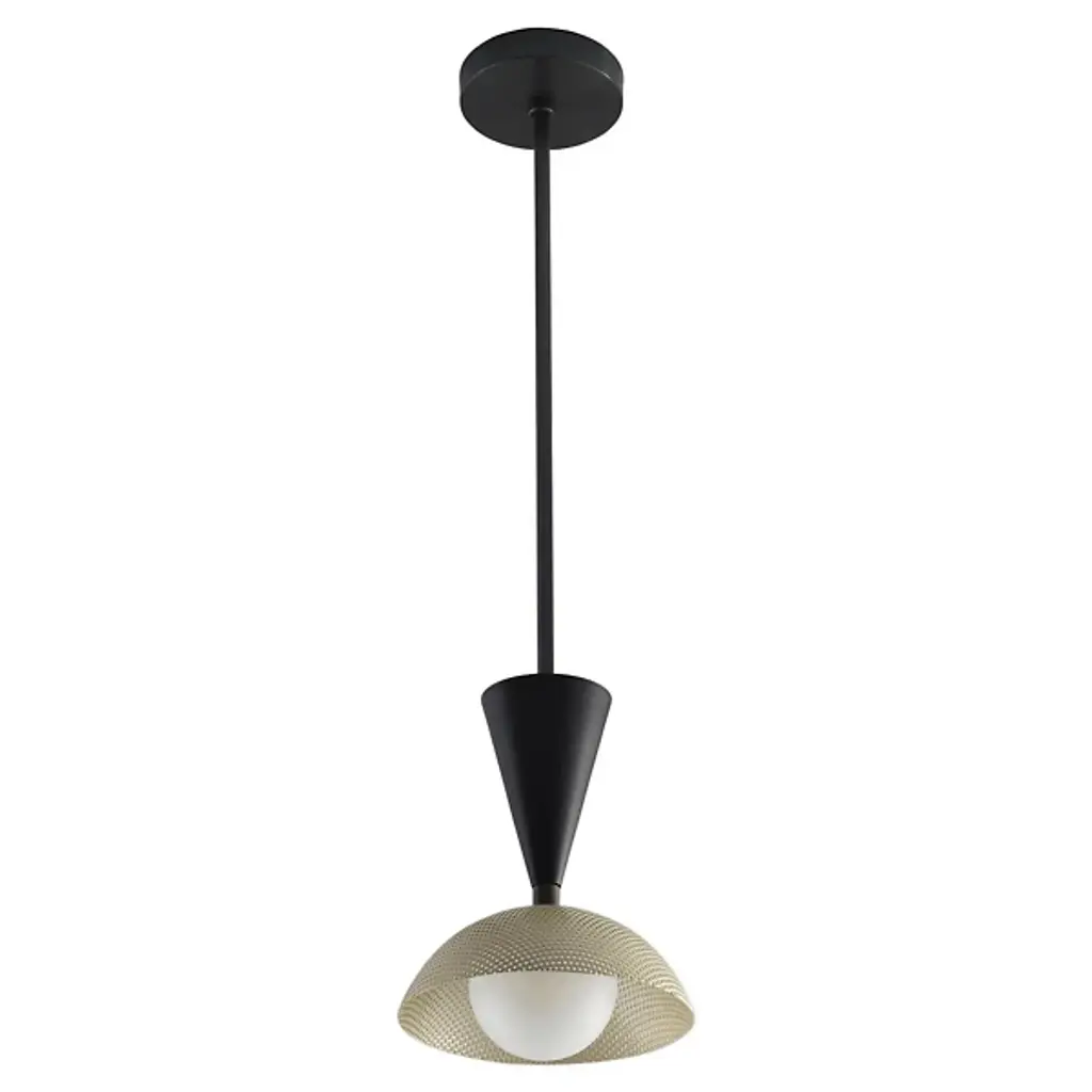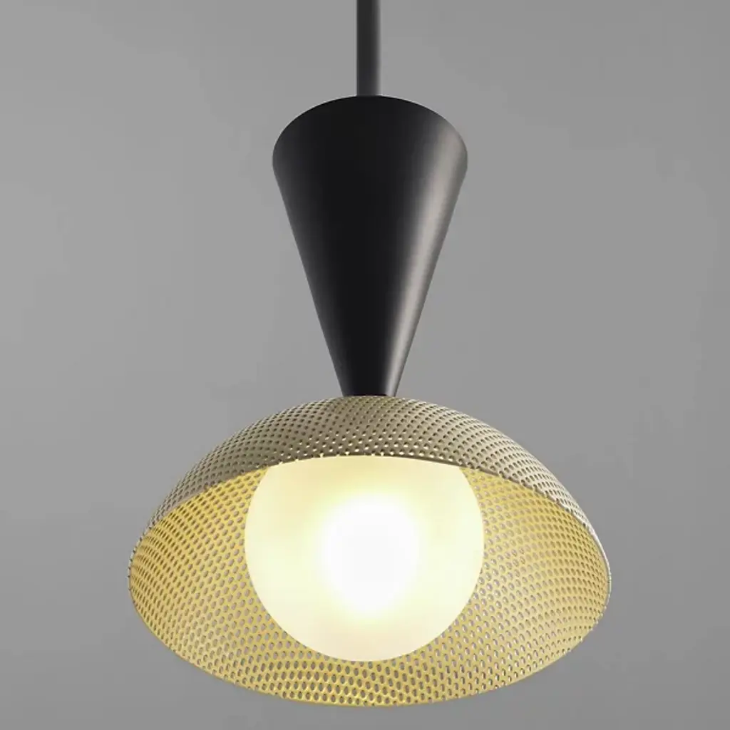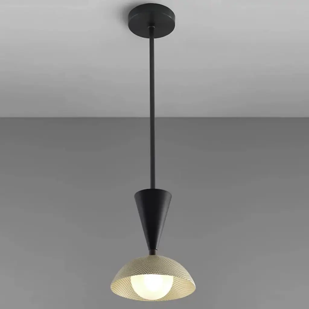 Decorate your living arrangement with the chic Molto Mini Pendant by Blueprint Lighting. This exquisite fixture takes the tradition of Italian modernism and brings it into the 21st century. Fine aluminum has been worked into a conical shape that unites seamlessly with a dome-shaped crema shade. The eye is drawn to the multitude of petite dots that line the shade’s surface. Within this shade is a globe containing a halogen bulb that radiates light throughout your home. This decorative piece is designed by the Blueprint Lighting team headed by Kelly Aaron, who has been creating high-quality fixtures since 2016. Her extensive art gallery background informs her work and the work of the talented artists by which she is surrounded.