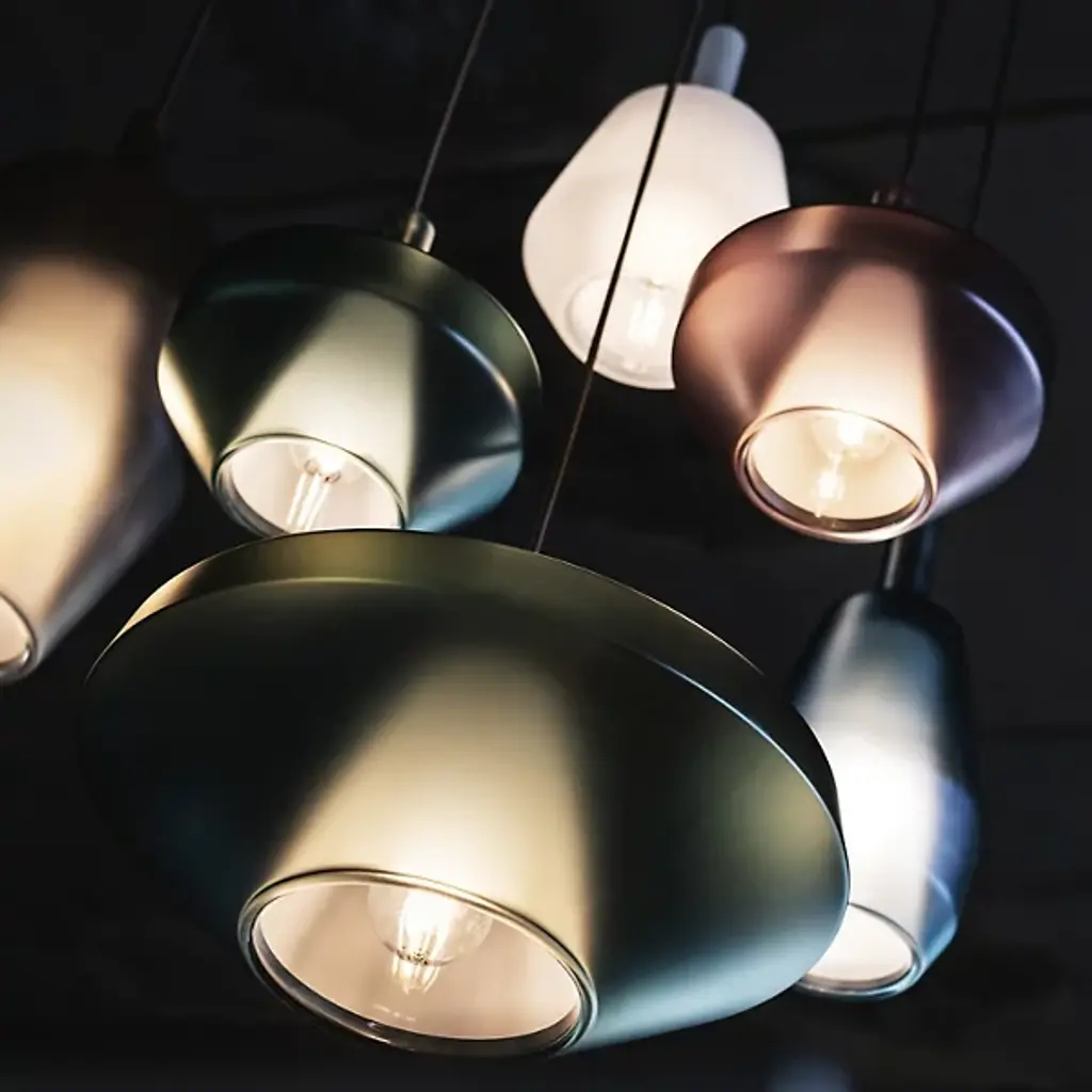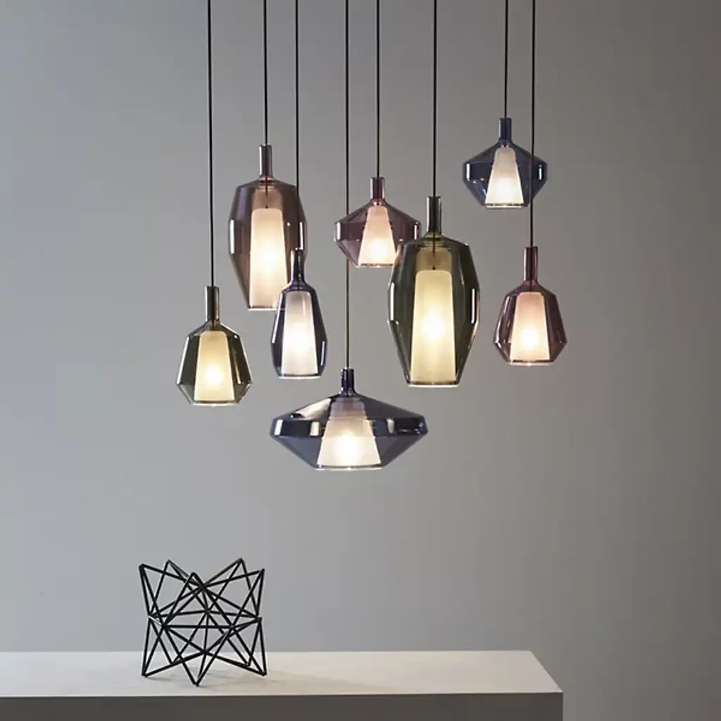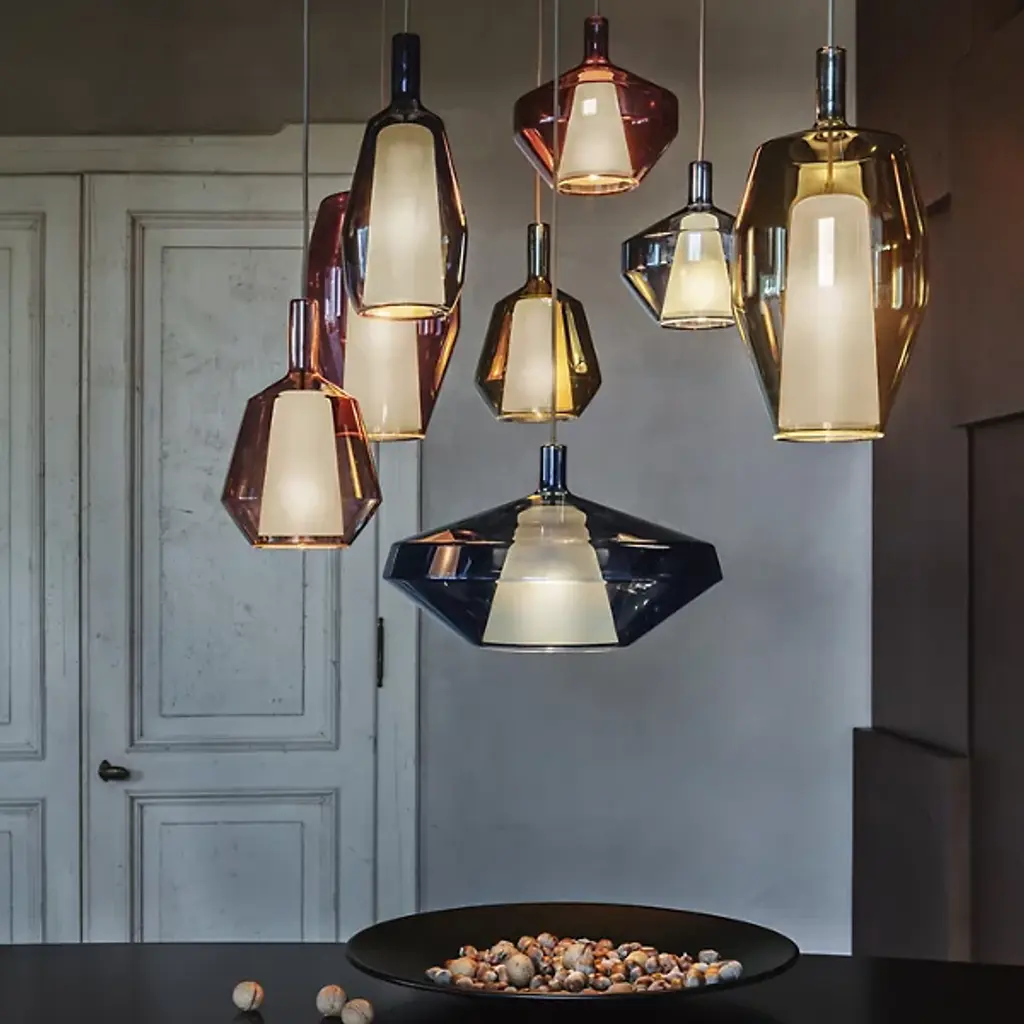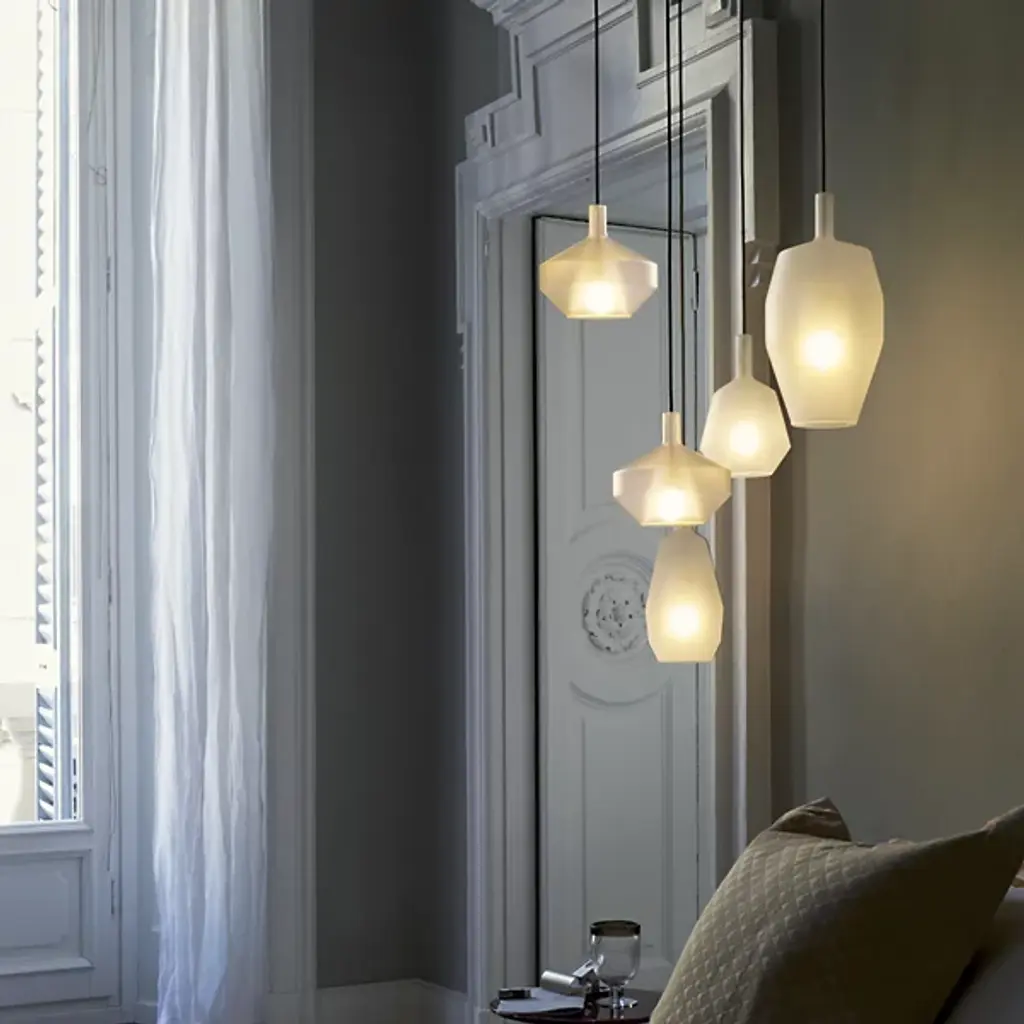 The Mom Multi Light Pendant from Penta fills one up with wonder like the light-bouncing charming shapes of traditional Venetian Luminaires. The pendant’s reference to tried-and-true designs speaks to creator Umberto Asnago’s process of balancing formal beauty with functional utility. The pendant excites one’s creativity with an adjustable suspension and a variety of shapes. Made from borosilicate glass, the opaque shades surround the light source with stone-like shapes. The layered glass shade receives an ambient glaze when turned on. Relaxed downlighting exits through the shade’s openings