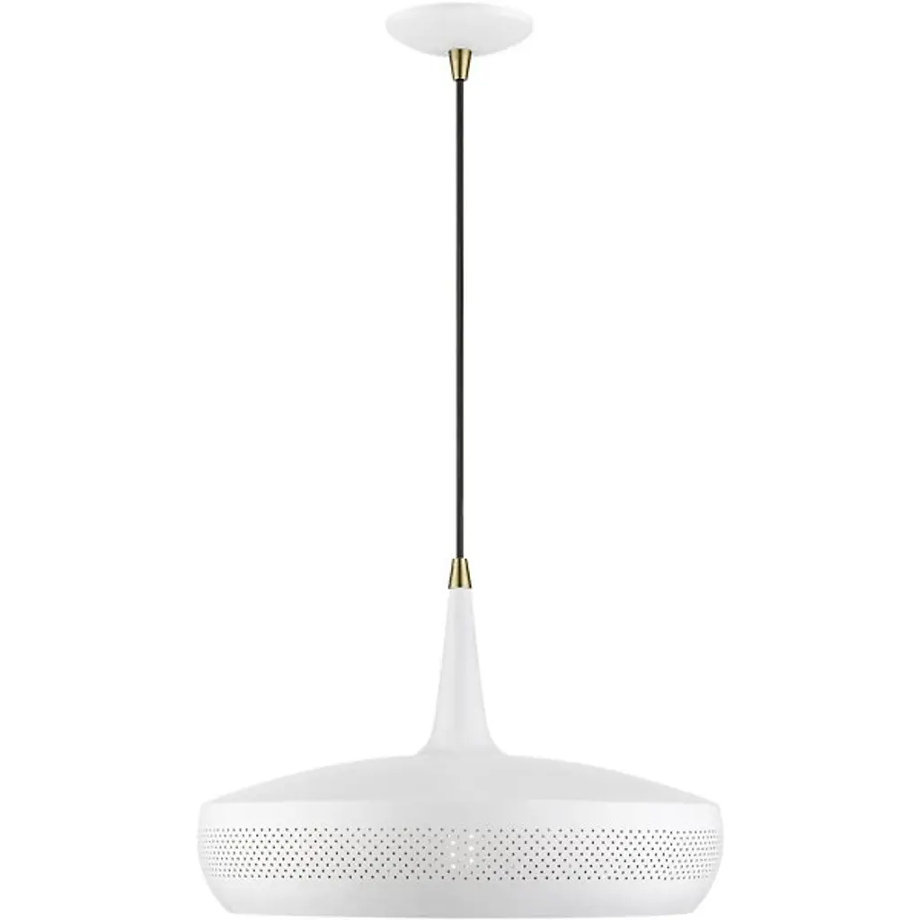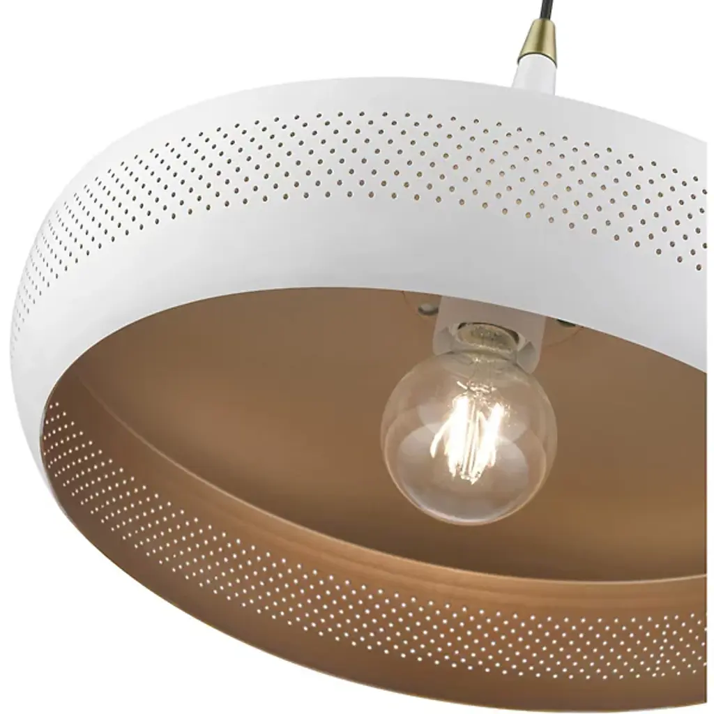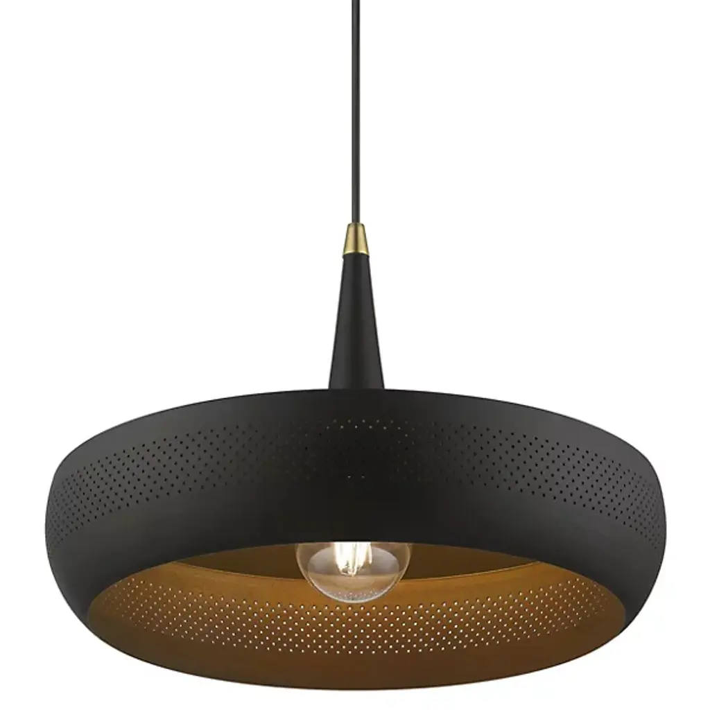 Give your venue a futuristic aura with the Mona Pendant by Alder & Ore. A conical addendum secures to a disc-shaped, neatly contouring frame. Your pendant is lined with tiny perforations which allow light from a halogen bulb to effortlessly splay throughout your decorative layout. A rounded canopy at your ceiling secures your light and complements this pendant’s industrial sense of style. The Abigail Pendant’s versatile design works well amid bedrooms and offices alike.