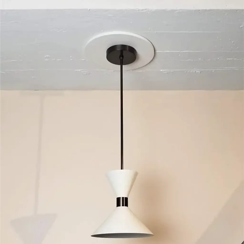 The Monarch Pendant From Blueprint Lighting celebrates French and Italian mid-century modernism with dressy and dramatic shades. Creator Blueprint Lighting creates the unexpected by designing unconventionally. This pendant welcomes use across the home with a slender downrod suspension. Its pairing of cone shades recalls the flaring outlines of luminaire’s past. The shades create drama by varying in scale. The light follows their sharp angles to lay a soft vertical light over the surfaces below. This light leaves behind a graphic silhouette.