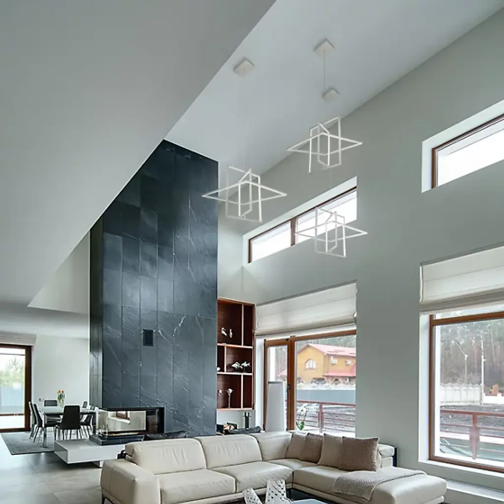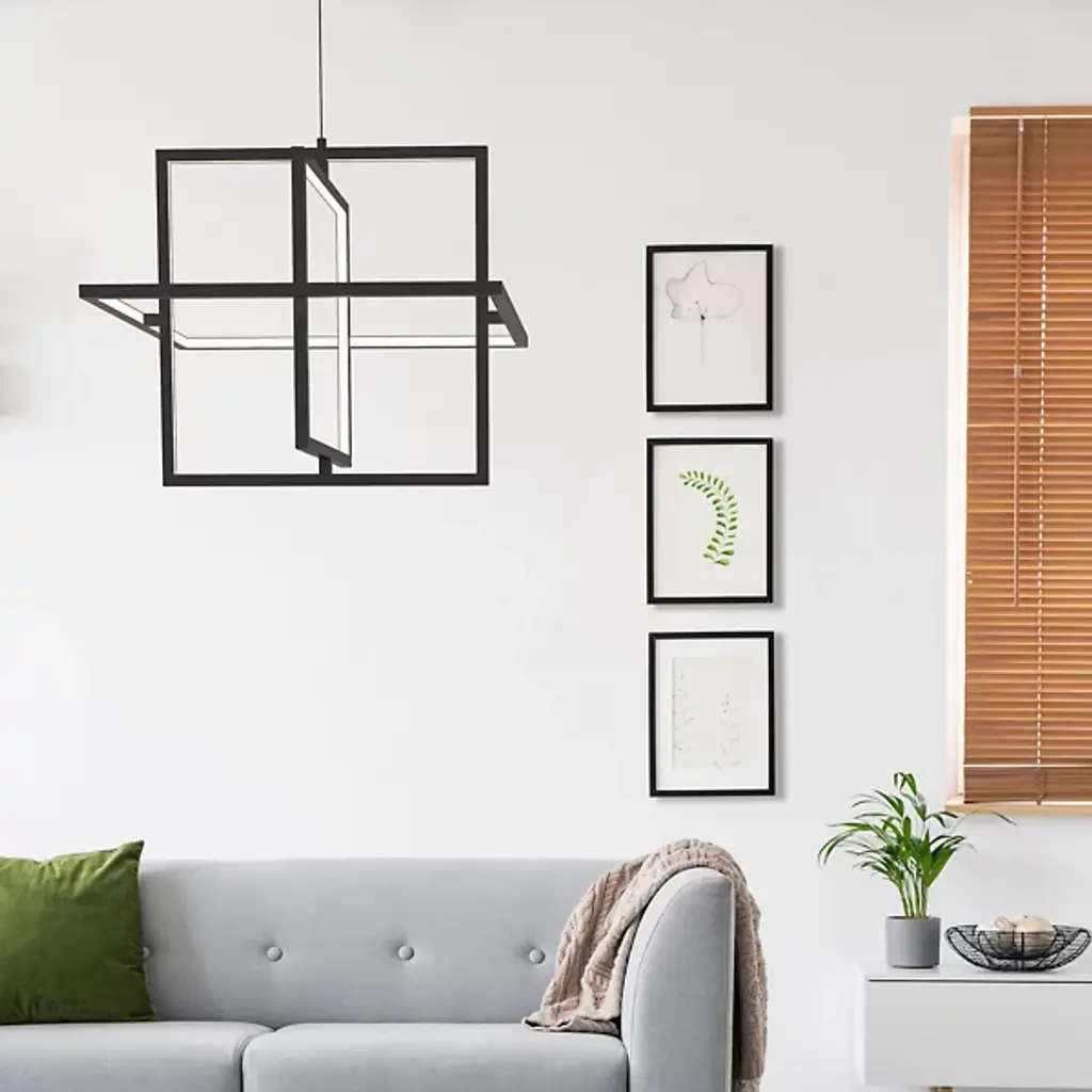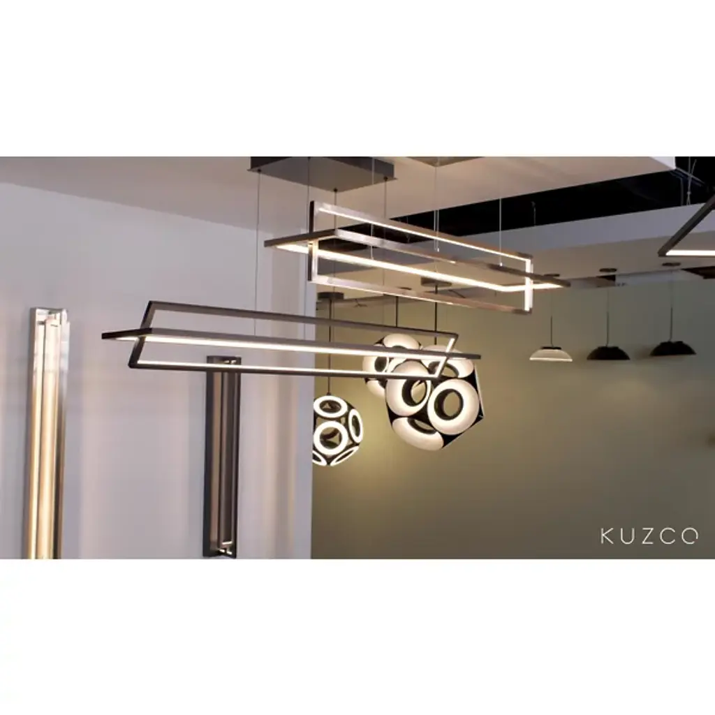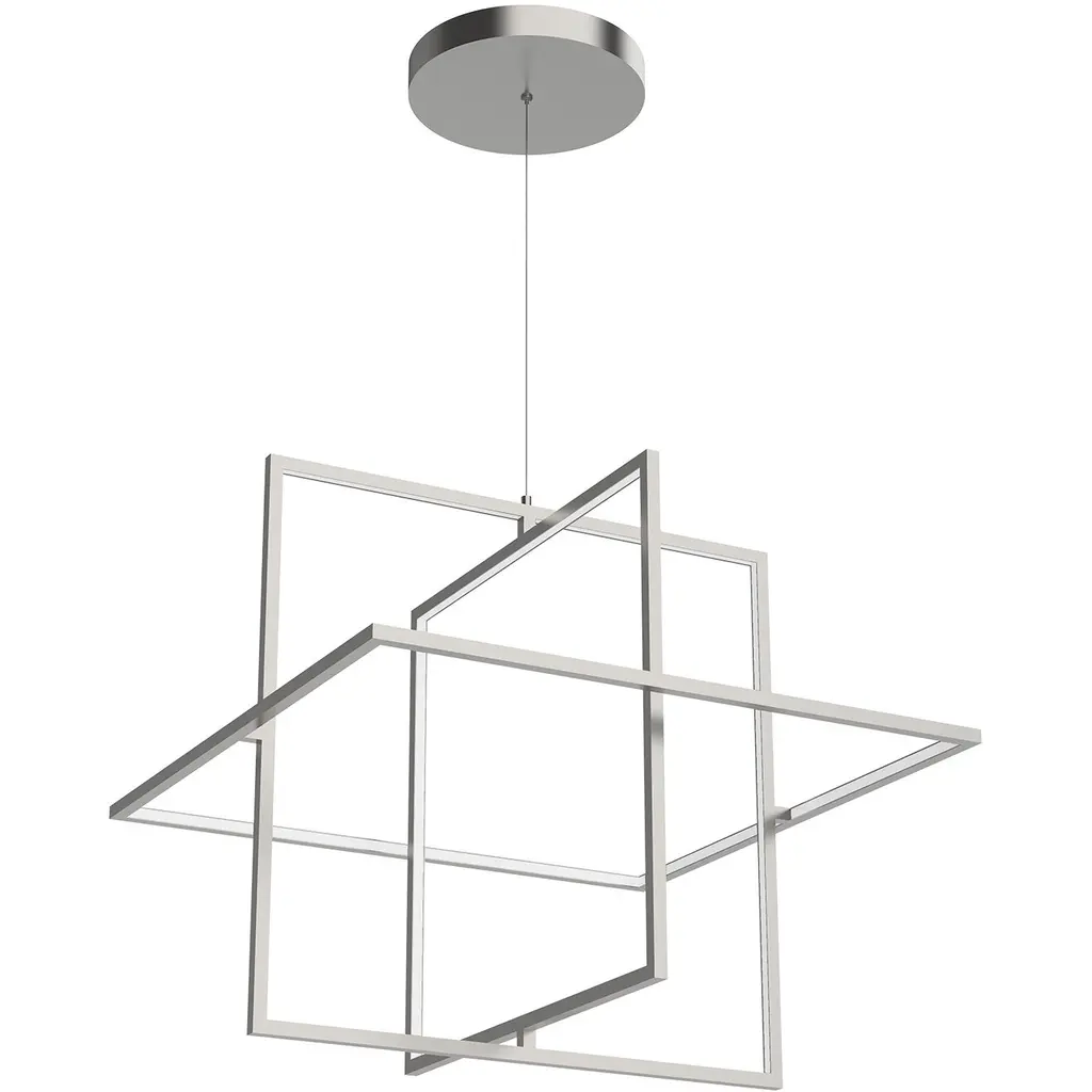 The Mondrian LED Pendant by Kuzco Lighting is a captivating piece that will look right at home in a contemporary décor. Bringing architectural appeal to the design, linear lines form the shape of 3 squares that appear to float in mid-air and create an intriguing visual. LED boards with frosted acrylic diffusers provide an energy efficient illumination that is soft and pleasing, while dimmer compatibility allows for multiple brightness levels to accommodate any setting.