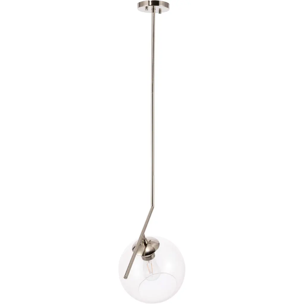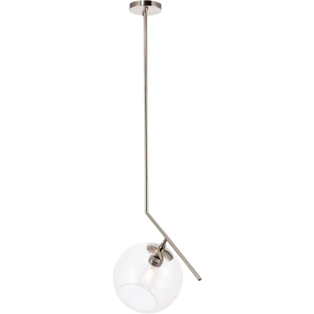 The Monroe Collection Pendant adds sophisticated elegance while still maintaining playful whimsy. The clean lines of the adjustable rod supports the light that is enclosed within the clear ball shade. Available in a brass, chrome, and two-toned black and brass finish, this fixture will add contemporary freshness to any room, your guests sure to notice your impeccable tastes in design (light bulbs not included).