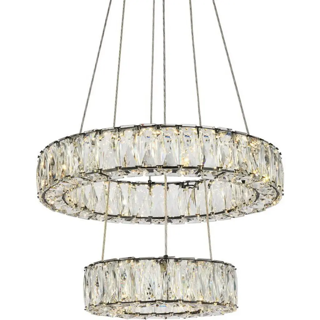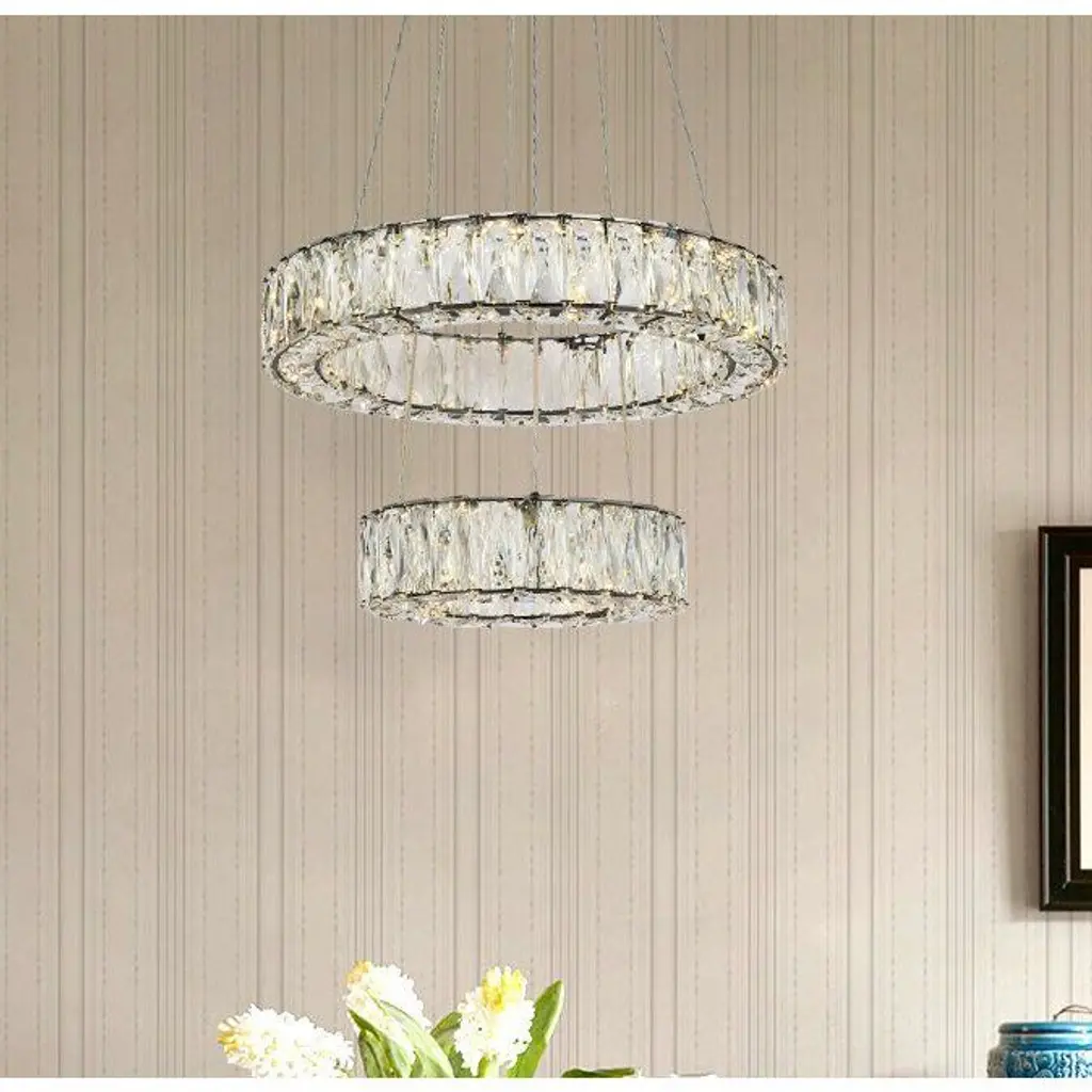 Diamonds are a girl’s best friend, and sparkling Monroe collection hanging fixtures take Marilyn’s famous lines to heart … for women and men alike. A minimal stainless-steel frame becomes dazzling when it is covered entirely with rectangular and square spectacularly faceted clear crystals. The oblong design hangs from almost invisible wires with brilliant integrated LED shining unseen from within. Stunning when placed in a dining room, kitchen, living room, or bedroom.
