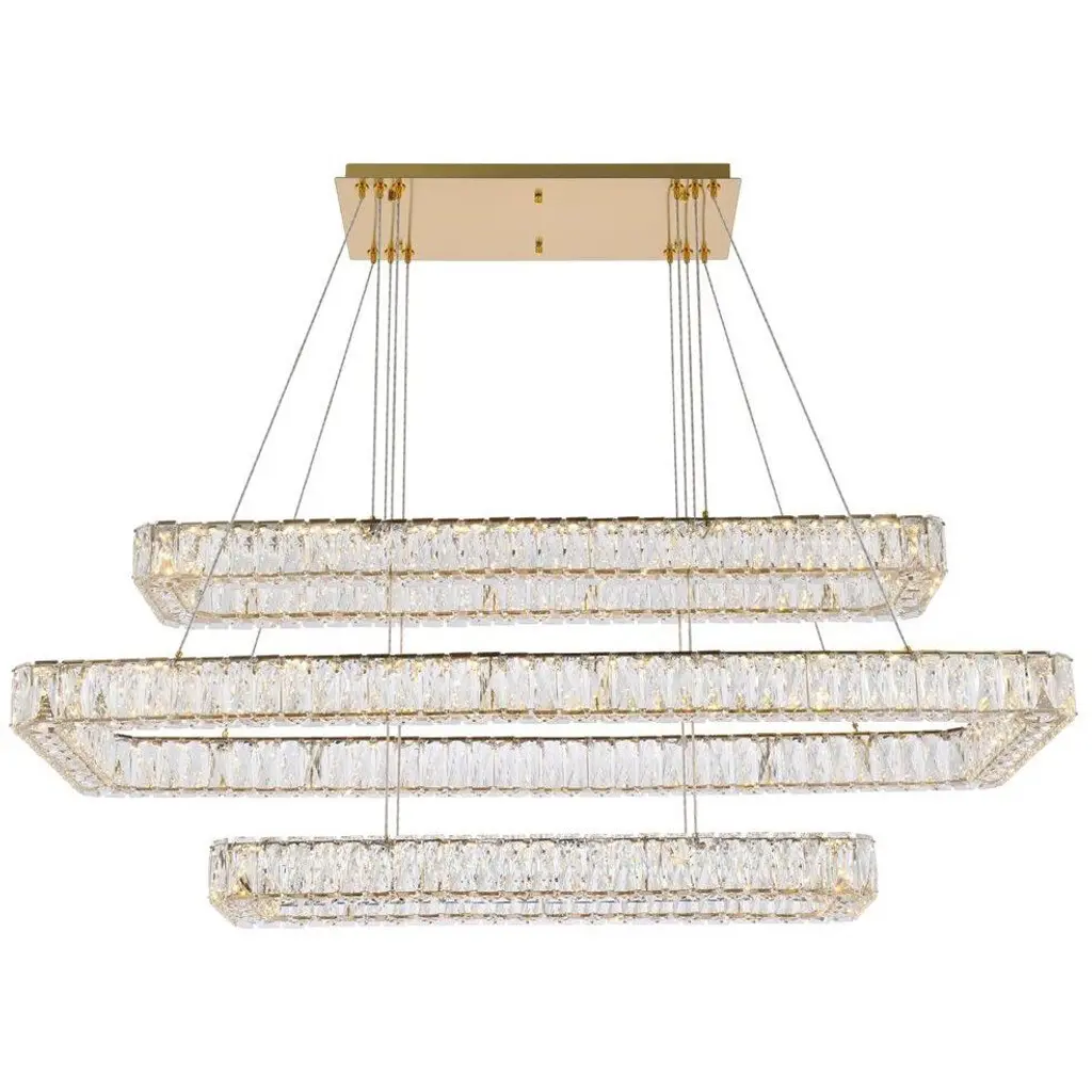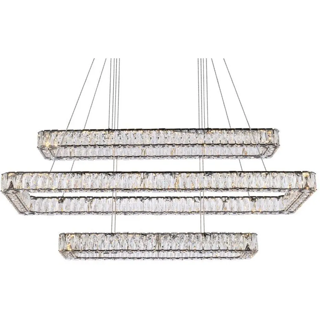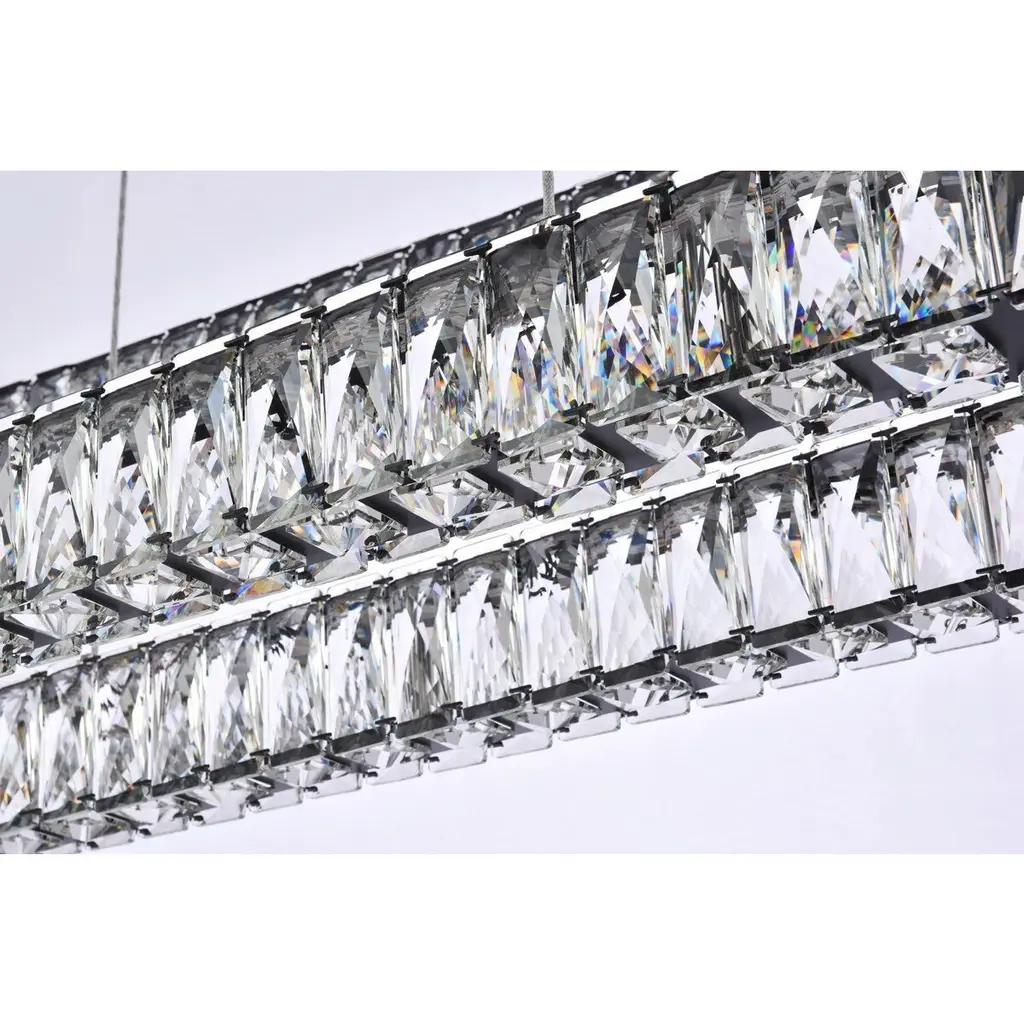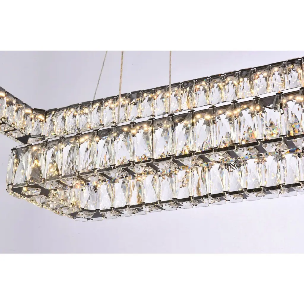 Diamonds are a girl’s best friend, and sparkling Monroe collection hanging fixtures take Marilyn’s famous lines to heart … for women and men alike. A minimal stainless-steel frame becomes dazzling when it is covered entirely with rectangular and square spectacularly faceted clear crystals. The oblong design hangs from almost invisible wires with brilliant integrated LED shining unseen from within. Stunning when placed in a dining room, kitchen, living room, or bedroom.