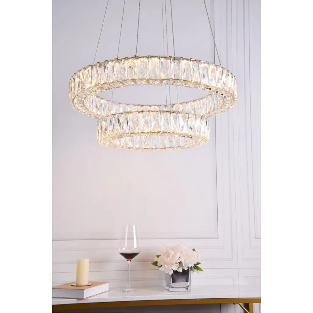 Diamonds are a girl’s best friend, and sparkling Monroe collection hanging fixtures take Marilyn’s famous lines to heart … for women and men alike. A minimal stainless-steel frame in a smooth gold finish becomes dazzling when it is covered entirely with rectangular and square spectacularly faceted royal-cut clear crystals. The oblong design hangs from almost invisible wires with brilliant integrated LED shining unseen from within. Stunning when placed in a dining room, kitchen, living room, or bedroom.
