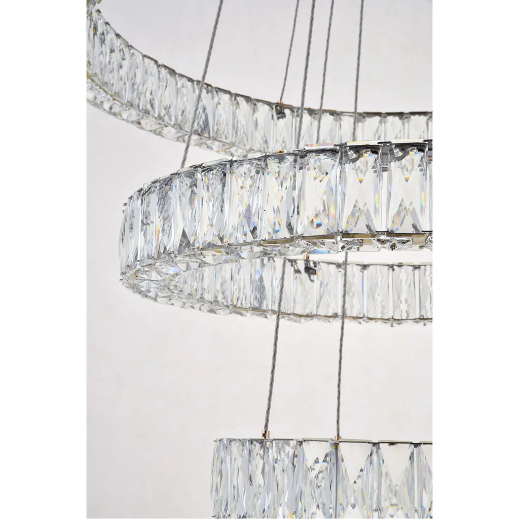 Diamonds are a girl’s best friend, and sparkling Monroe collection hanging fixtures take Marilyn’s famous lines to heart … for women and men alike. A minimal stainless-steel frame in a smooth gold finish becomes dazzling when it is covered entirely with rectangular and square spectacularly faceted royal-cut clear crystals. The oblong design hangs from almost invisible wires with brilliant integrated LED shining unseen from within. Stunning when placed in a dining room, kitchen, living room, or bedroom.