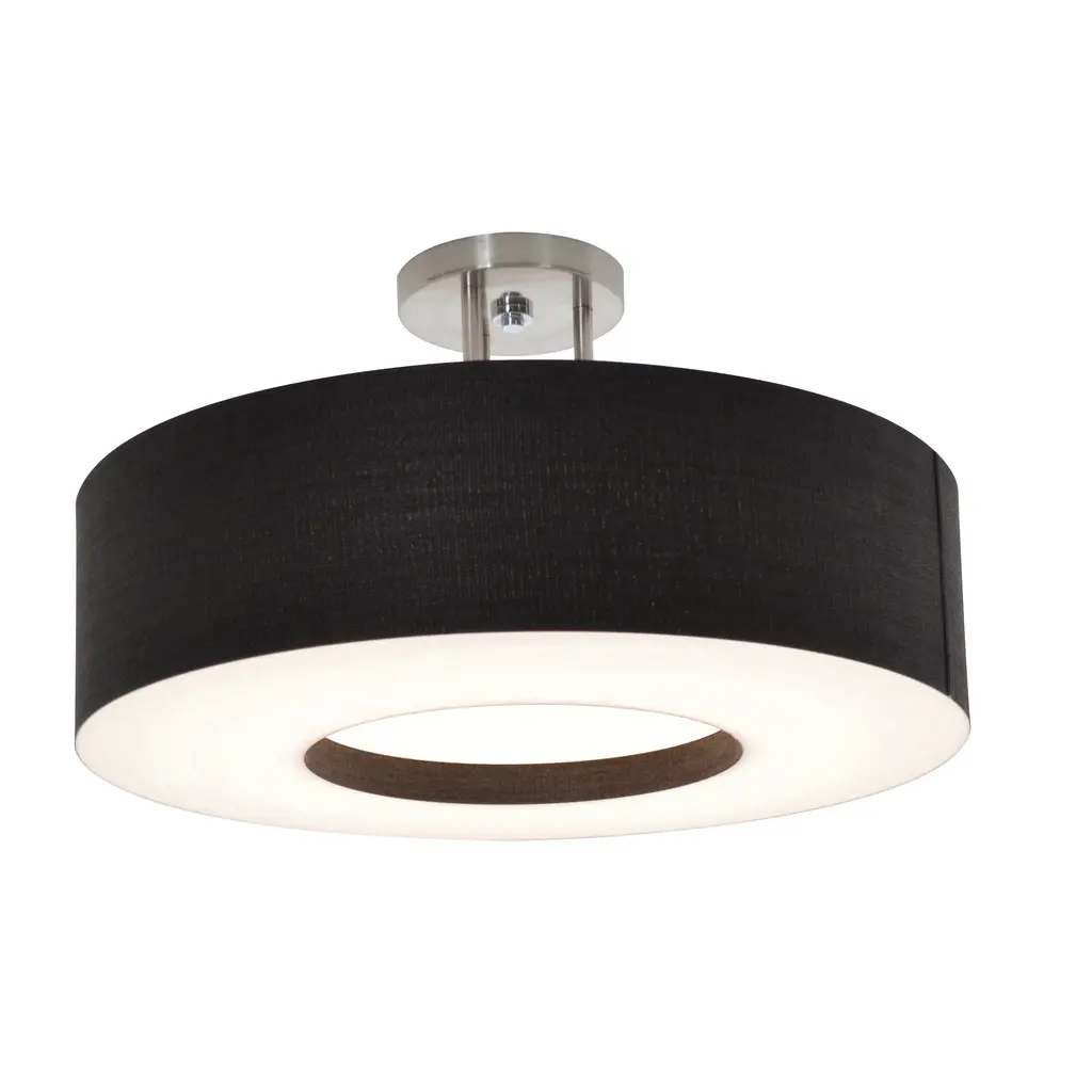 A finely tailored blend of style and functionality. The Montclair Semi-Flushmount by AFX Lighting features a drum shade made of LumaFuse, a laminated Fabric/Acrylic combo that is both durable and easy to clean. A stepped recess in the center both adds dimension and helps with the even dispersal of diffused LED light. Use this semi-flushmount in kitchens, entryways or any other interior in need of crisp, modern design and energy efficient light.
