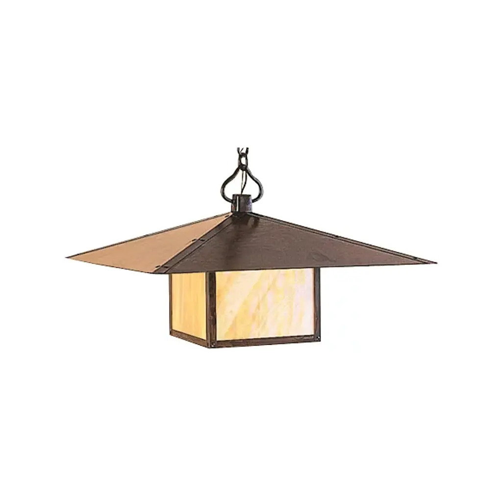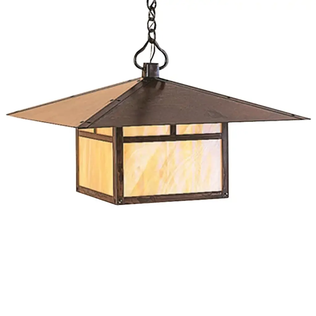 The Arroyo Craftsman Monterey Outdoor Pendant brings to mind the serenity of classic bungalows that feature the gentle touch of Asian aesthetics with their broad, pitched roofs and cloud lift details. Hand-applied finishes and a variety of handmade glass styles give the fixture an earthy feel in the entryway or covered gazebo.