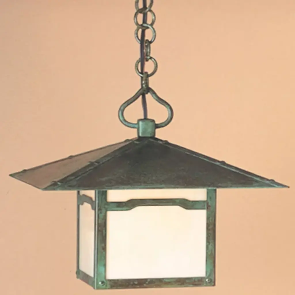 The Arroyo Craftsman Monterey Outdoor Pendant brings to mind the serenity of classic bungalows that feature the gentle touch of Asian aesthetics with their broad, pitched roofs and cloud lift details. Hand-applied finishes and a variety of handmade glass styles give the fixture an earthy feel in the entryway or covered gazebo.