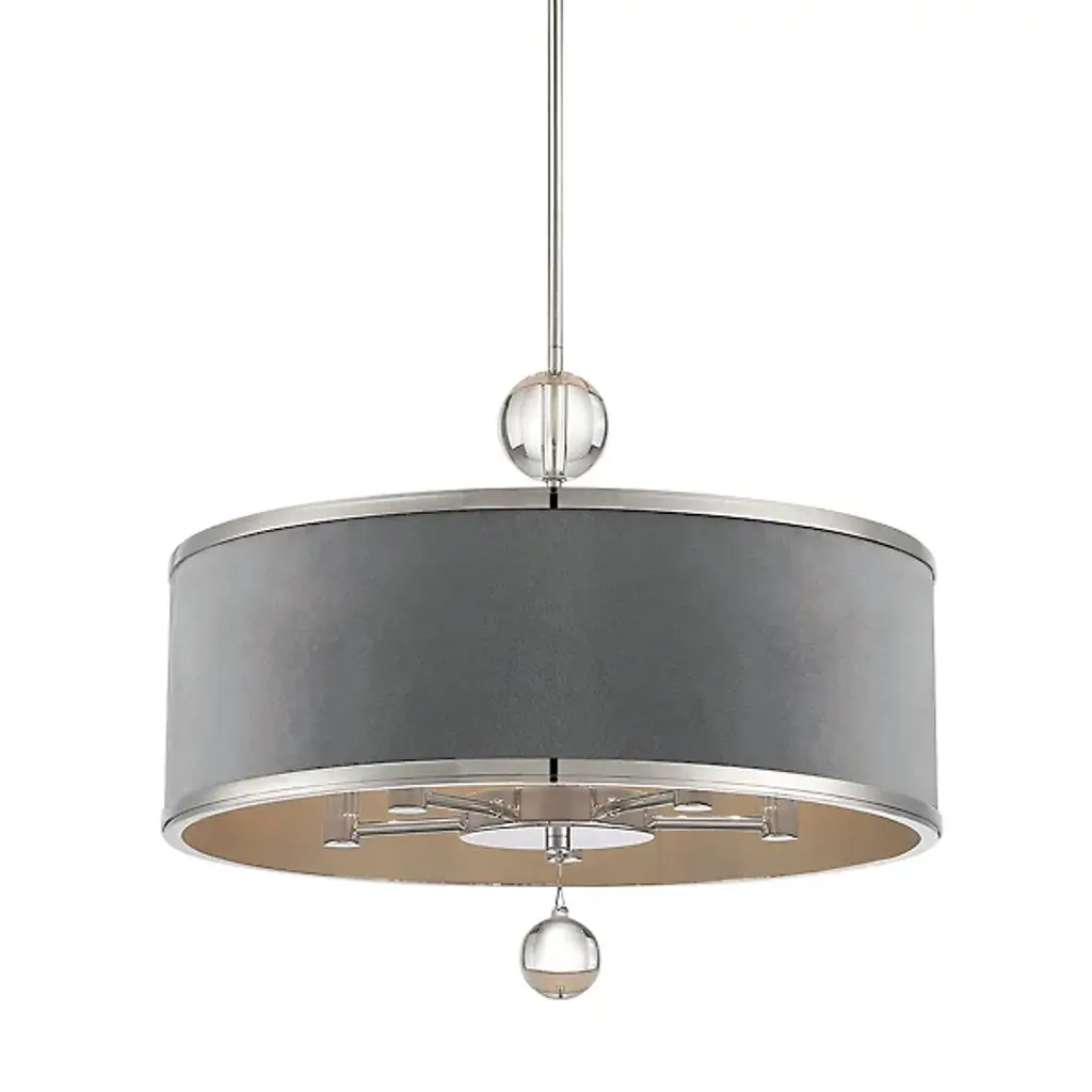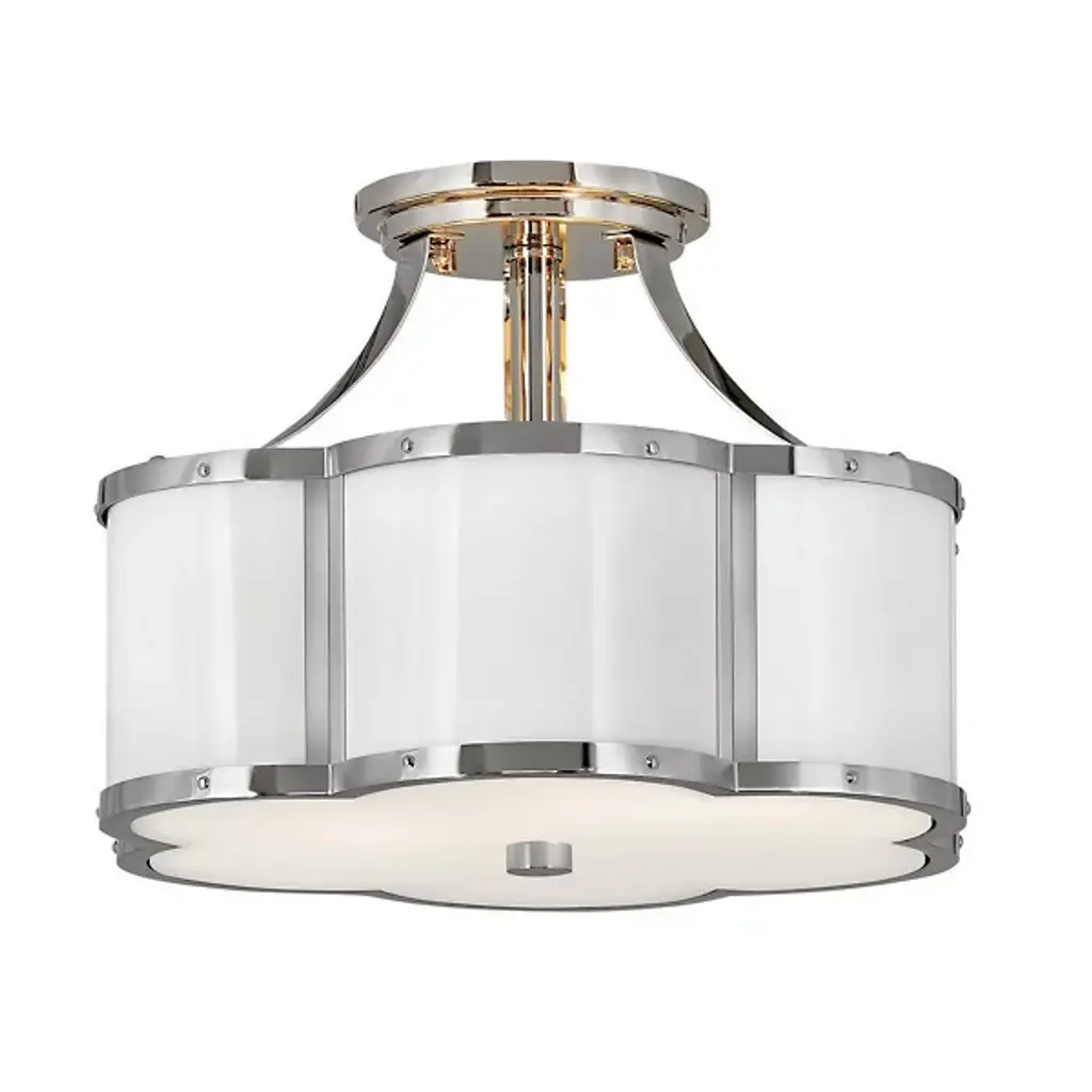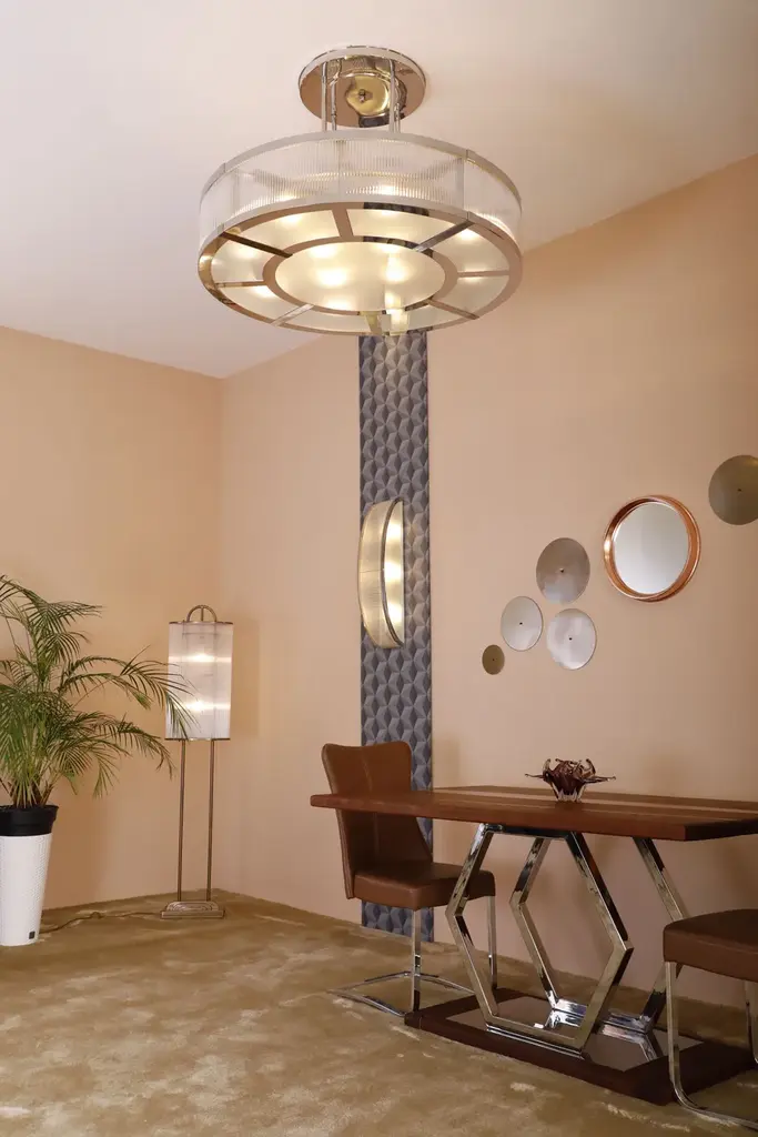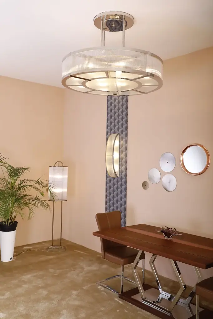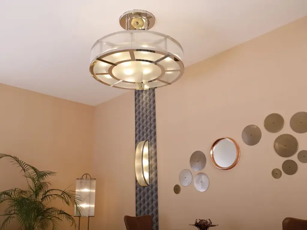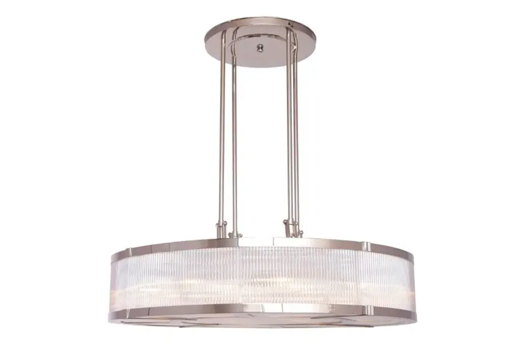 Montreal III is a suspension lamp made of brass available in different finishes.Finishes: Antique, Shiny brass, Matt brass, Shiny nickel, Matt nickelCapacity : 12x75 W E27This little collection consists solely of grand sized chandeliers. They are represented in oval and round forms and two sizes. Just as in the Petitot collection the glass plates are frosted and the crystal tubes on the sides are clear.