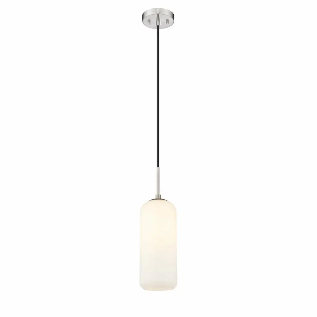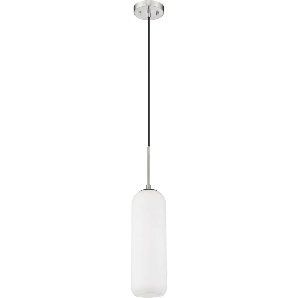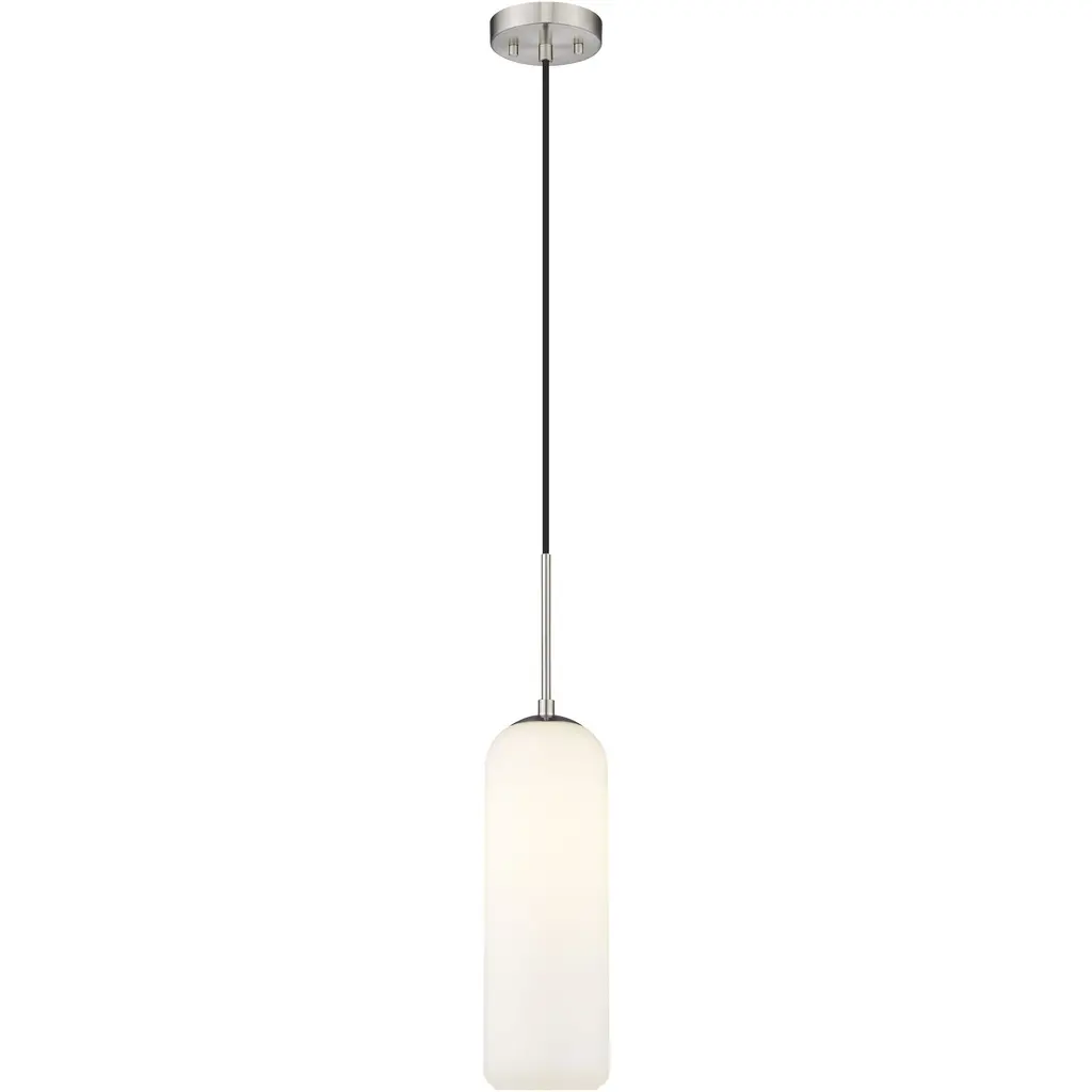 With the elegant simplicity that makes Mid-Century Modern aesthetics endure, the Monty one-light pendant complements a range of decor schemes as it infuses soft, ambient illumination. This pendant offers an alluring curved shade made of opal glass with a slender holder and round canopy fashioned of brushed nickel finish steel. Hanging from a charming braided black cord, its fashionable casual look sets the tone in any space.