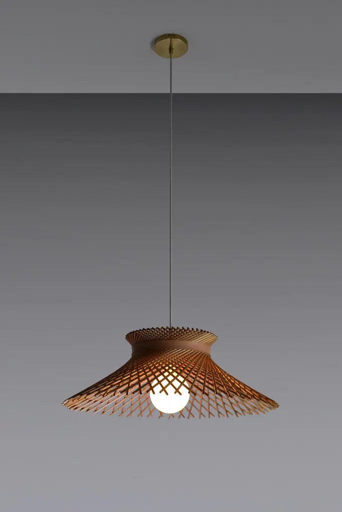 Mooda Natural Maple Pendant 9 by INDO-Dimensions: Ø 66 x H 25.4 cm (Suspension height is made to specification)Materials: Natural Maple, Mugla White stoneAll our lamps can be wired according to each country. If sold to the USA it will be wired for the USA for instance.ELECTRICALLAMPING100-250V Rated E26 Metal SocketDIMMINGLeading Edge OR Trailing EdgeFits all standard J-BoxesBULBTALA SPHERE IIG24 Matte Glass LED Bulb110-120V 6W95CRI 480Lm 2700KAlso available in other dimensions and materials. Please contact us.Dimension options: Ø 41.9 x H 17.8 cm.Material options:WOODMapleOak FINISHBleachedNaturalOxidizedSTONEMugla WhiteMadurai BlackCrema MarfilNero Marquina Venetian CalacattaLEATHERVachetta NaturalVinegaroon BlackMETALMatte BlackBrushed BrassFABRIC CORDBlackWhiteEach piece is carefully handcrafted by our team using natural materials and traditional processes. Slight variations may occur. INDO- is an award winning interdisciplinary design studio based in Providence, RI. Founded in 2018 by Urvi Sharma and Manan Narang - both grew up in New Delhi and met at the Rhode Island School of Design - INDO- is a product of experiencing both places and cultures. Using a blend of craft and narrative in our creative process, we aim to share the rich cultural and historical identity we bring with us as Indian designers in the rapidly changing landscape of American design. With a focus on re-contextualizing traditional techniques from different disciplines of art and craft into our work, INDO- creates contemporary objects that celebrate the handmade and acknowledge the people and places that inspired them.