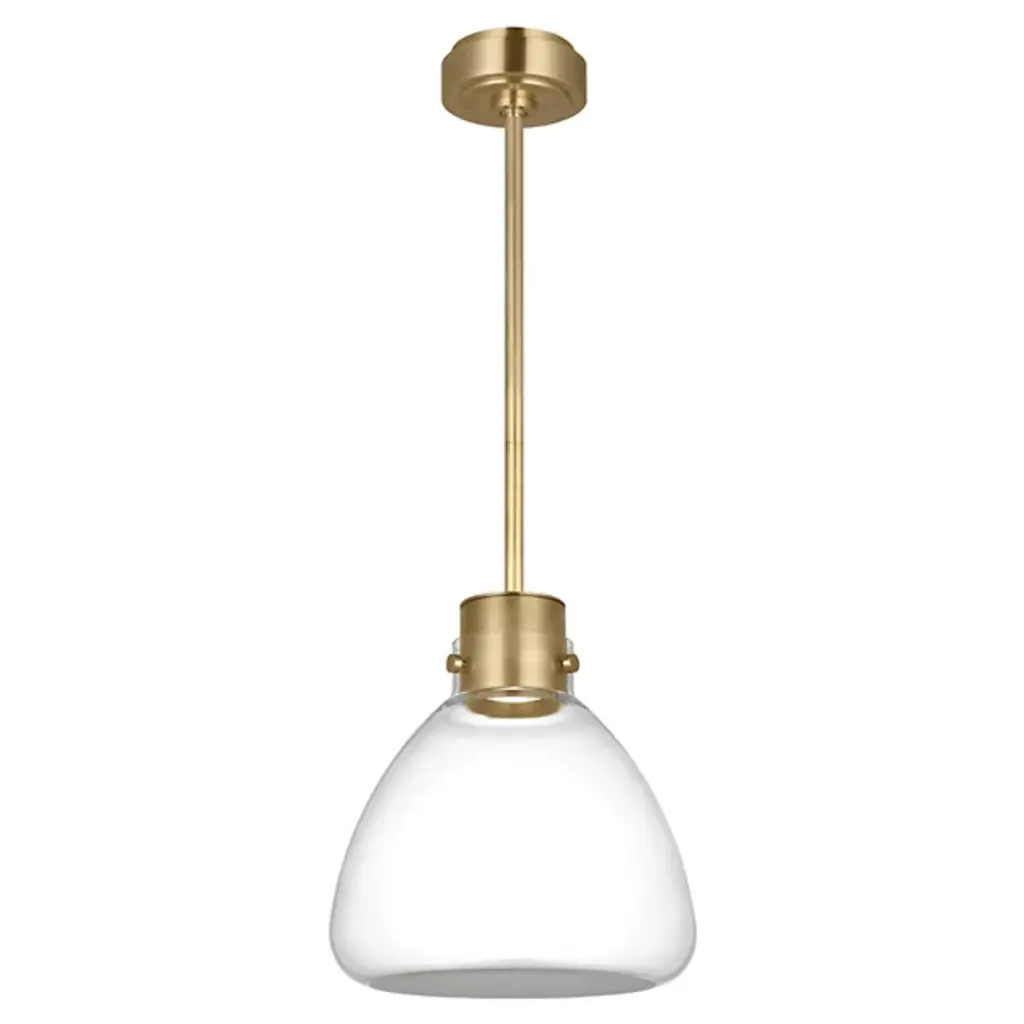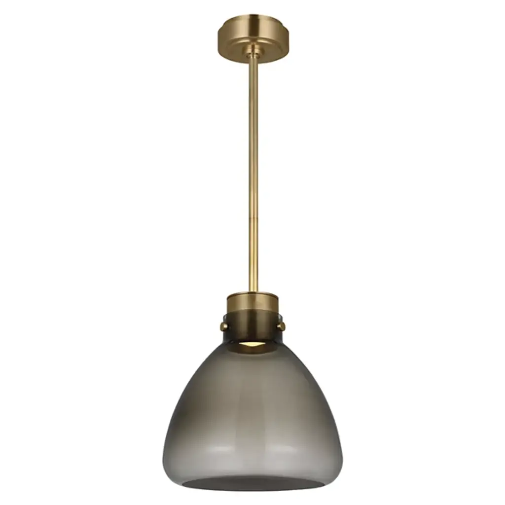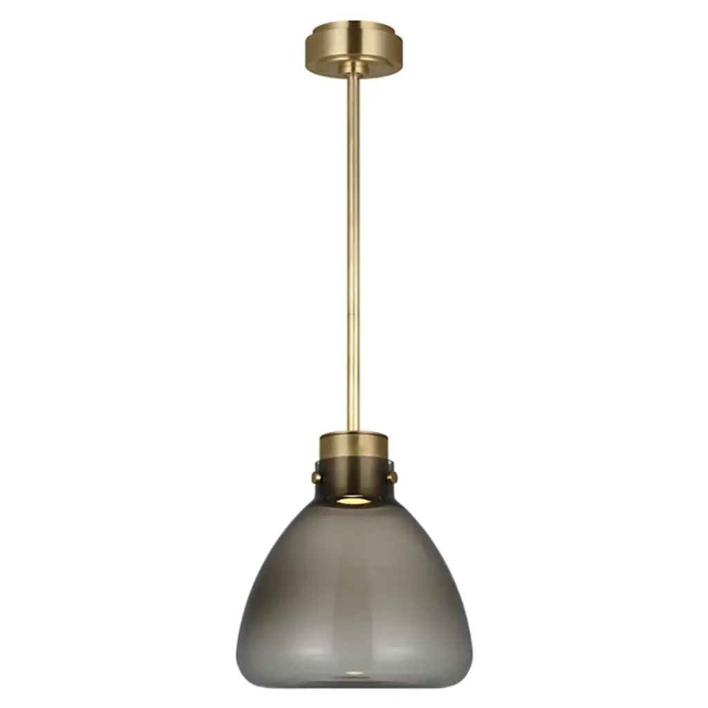The Morgan Small LED Pendant from Visual Comfort Modern brings a fresh perspective to mid-century style with its simple form and thoughtful detailing. Designed by AvroKO, this compact pendant pairs a flask-shaped Italian glass shade with a subtly textured, sandblasted bottom that diffuses warm LED light. A brass structure adds a refined finish, making it an ideal choice for kitchens, dining nooks, or other areas needing soft, modern illumination with a timeless sensibility.