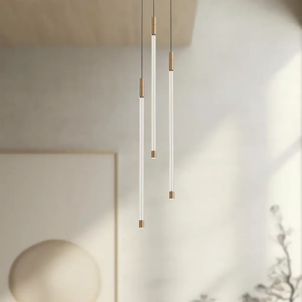 The Motif 3 Light LED Multi Light Pendant by Kuzco Lighting is a simple and stunning addition to spaces that was inspired by the multitude of configurations it can create. A round canopy supports a series of beautiful, refractive cylinders that are neatly capped on either end. Evenly diffusing a layer of welcoming light throughout their forms thanks to modern LED filaments, this contemporary composition adds an elegant, functional touch to the rooms it is in.