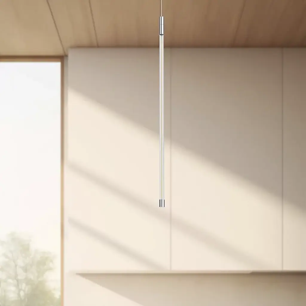 The Motif LED Mini Pendant by Kuzco Lighting is a contemporary addition to spaces that balances form with function. Simple yet striking, a single, refractive glass cylinder houses modern LED filaments to provide a warm, welcoming, and even layer of energy-efficient illumination to surroundings. Neatly capped on either end, this glass shade is suspended from a round canopy by a thin cable to create a clean, streamlined silhouette that pairs perfectly with a range of environments.