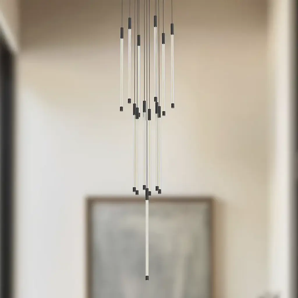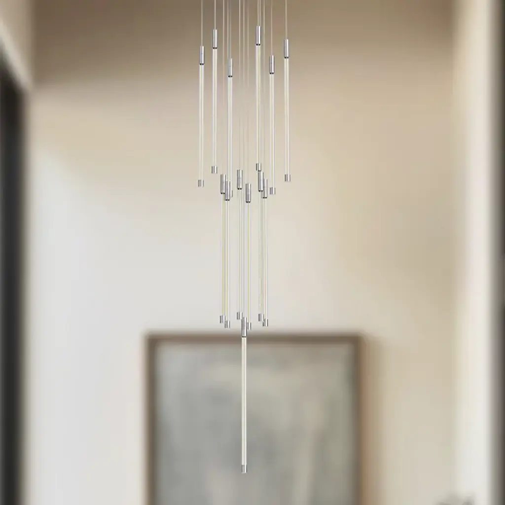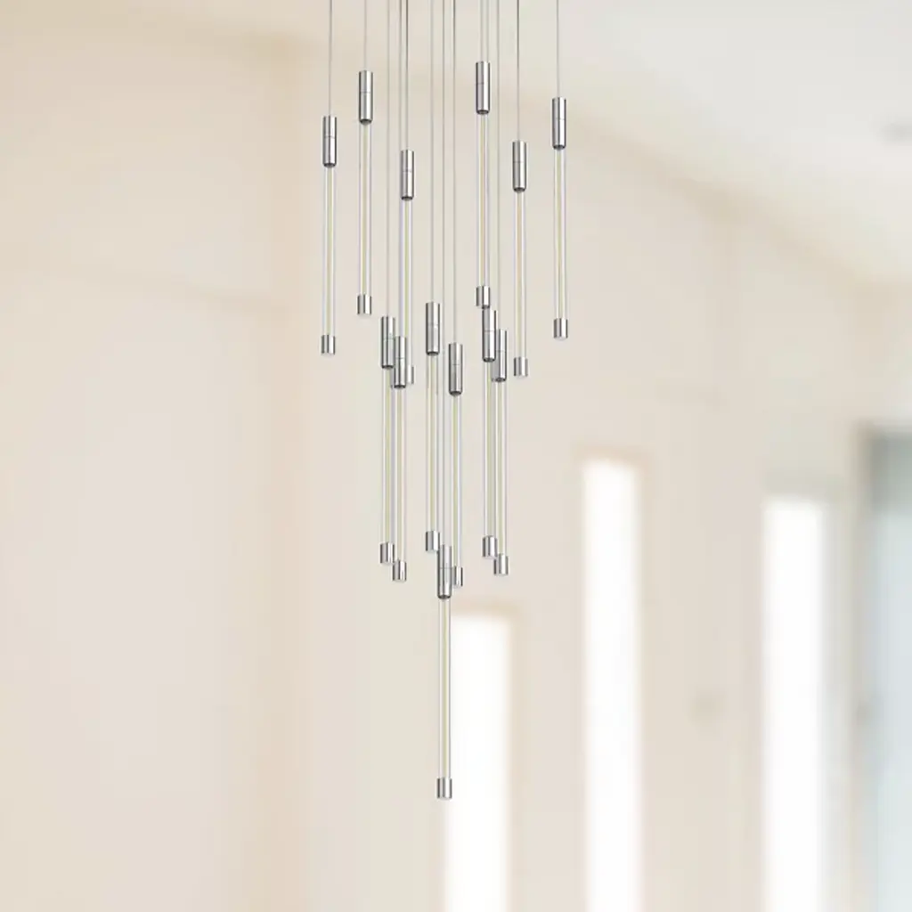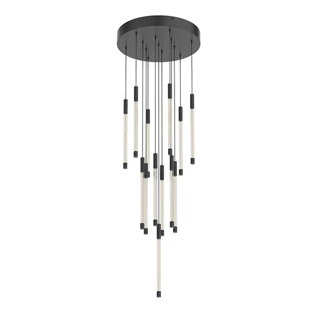 The Motif LED Multi Light Pendant by Kuzco Lighting makes a statement with its minimal yet dynamic nature. Inspired by the multitude of configurations it can make, the thin cables that descend from the round canopy above them each support a beautiful, refractive glass cylinder and allow them to be set in a way that complements the space they are in. Each glass piece is neatly capped on either end for a clean, tailored look and an LED filament within produces a warm, welcoming layer of light that gives this contemporary piece an elegant, inviting look.