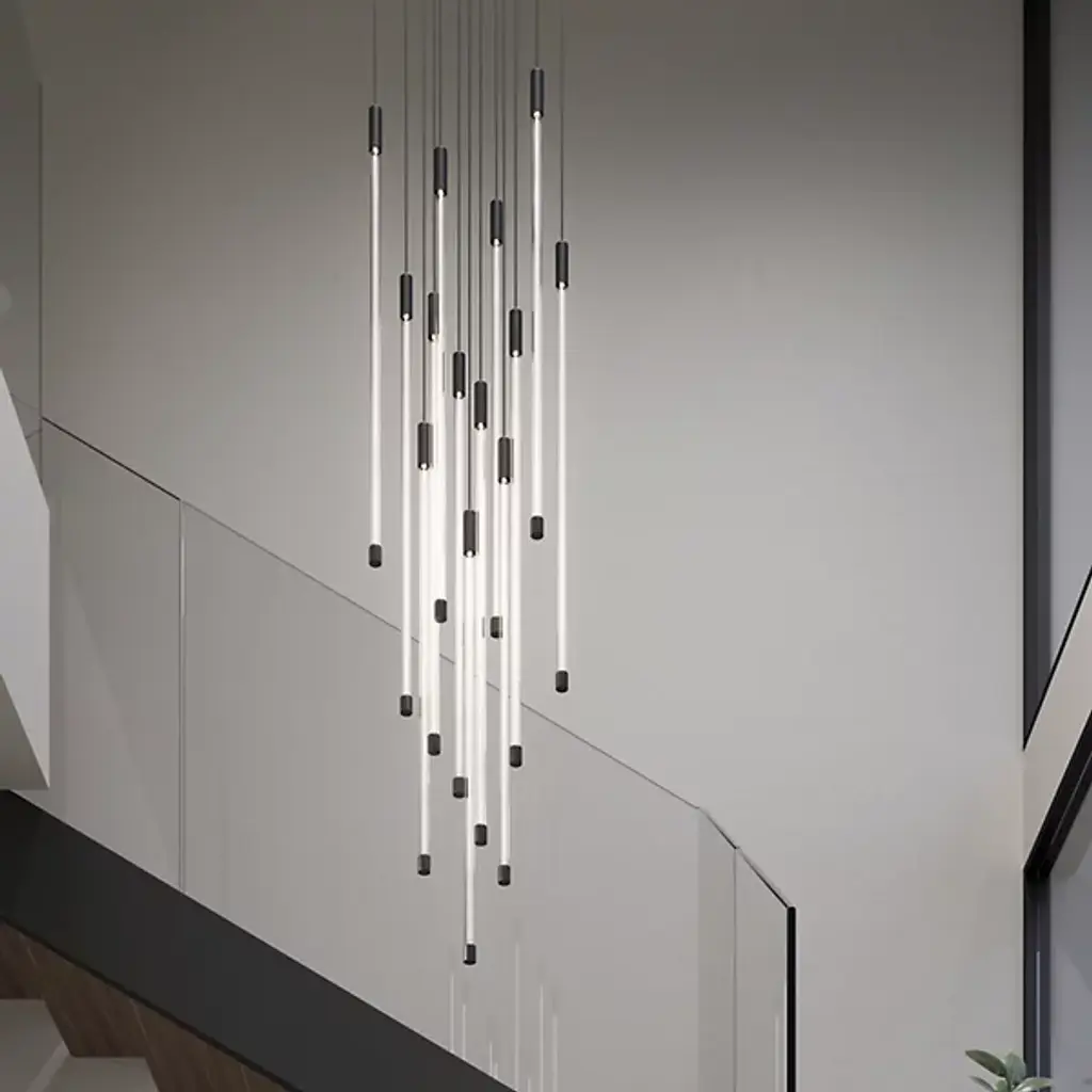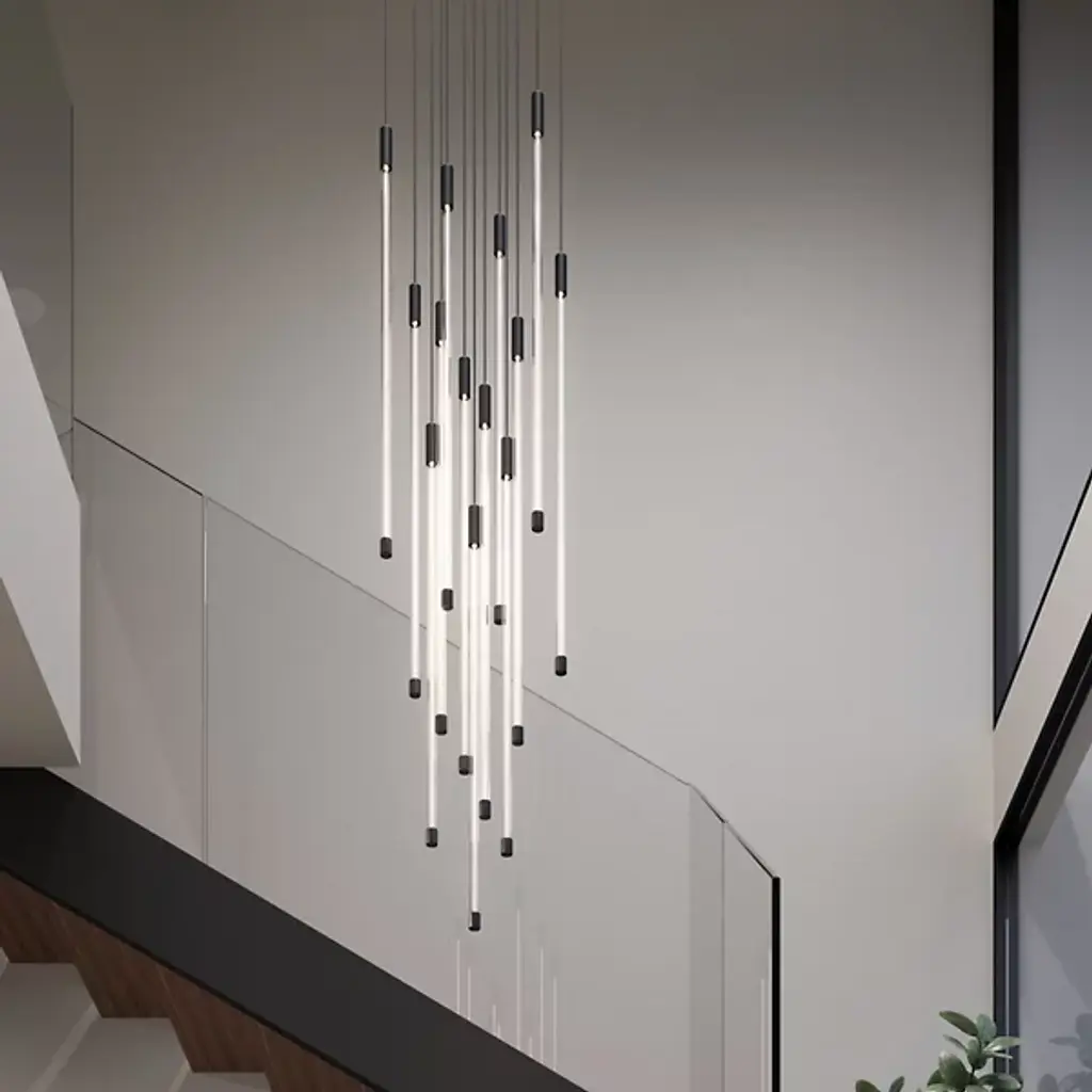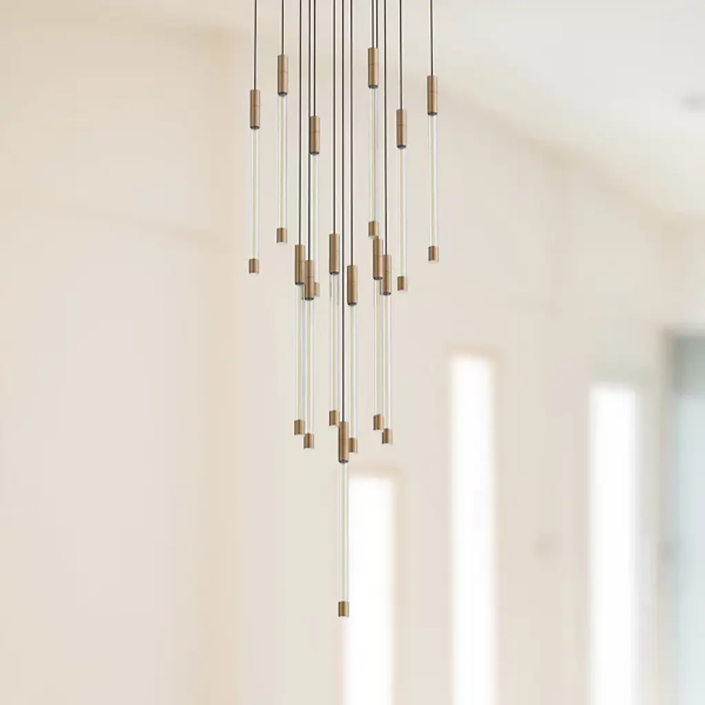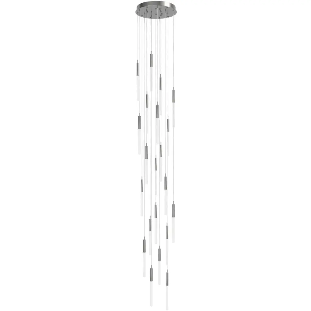 The Motif LED Multi Light Pendant by Kuzco Lighting makes a statement with its minimal yet dynamic nature. Inspired by the multitude of configurations it can make, the thin cables that descend from the round canopy above them each support a beautiful, refractive glass cylinder and allow them to be set in a way that complements the space they are in. Each glass piece is neatly capped on either end for a clean, tailored look and an LED filament within produces a warm, welcoming layer of light that gives this contemporary piece an elegant, inviting look.
