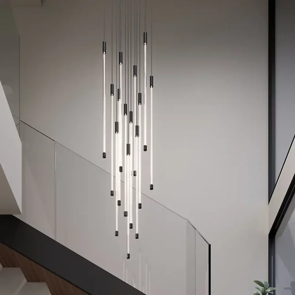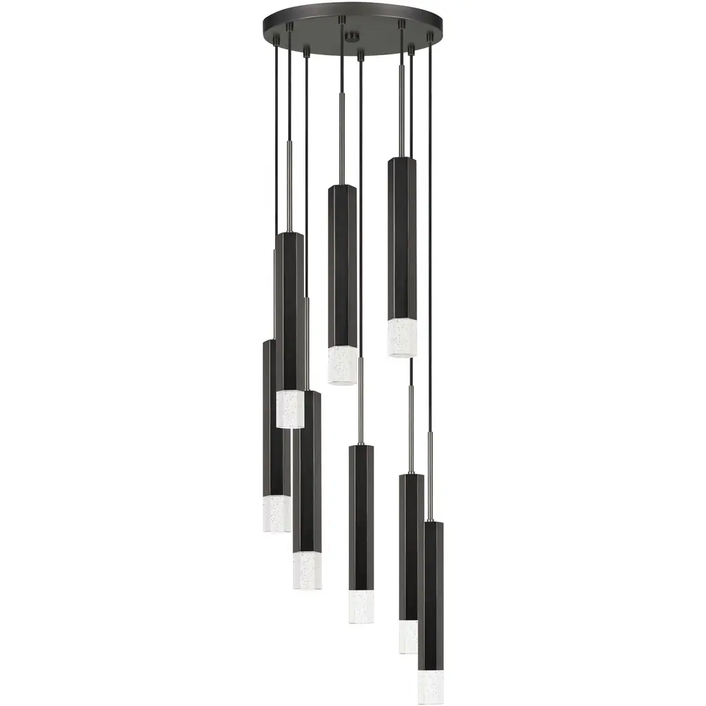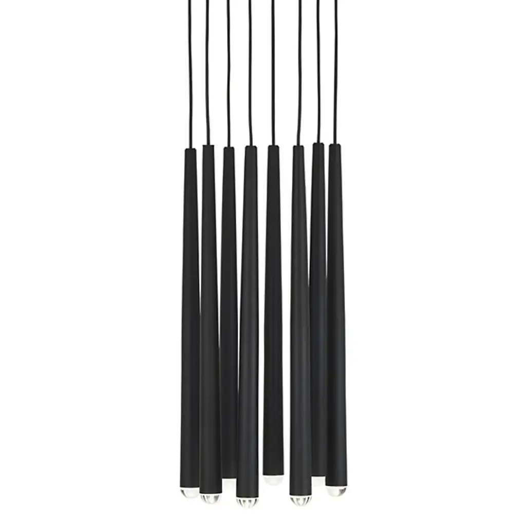 The Motif LED Multi Light Pendant by Kuzco Lighting makes a statement with its minimal yet dynamic nature. Inspired by the multitude of configurations it can make, the thin cables that descend from the round canopy above them each support a beautiful, refractive glass cylinder and allow them to be set in a way that complements the space they are in. Each glass piece is neatly capped on either end for a clean, tailored look and an LED filament within produces a warm, welcoming layer of light that gives this contemporary piece an elegant, inviting look.