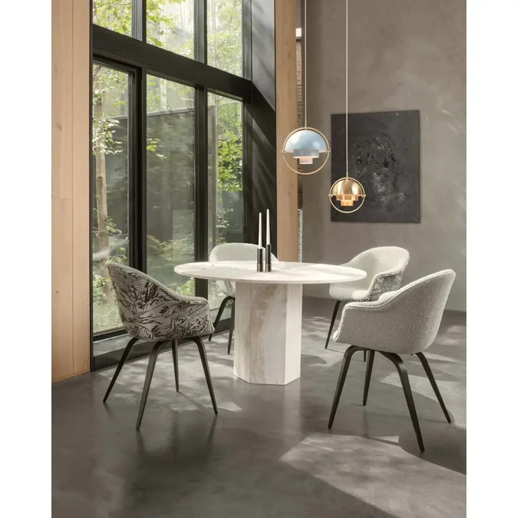 GUBI’s Multi-Lite, designed by Louis Weisdorf in 1972, is an elegant pendant light that plays with geometric shapes. As its name suggests, the pendant has multiple uses and configurations: by rotating the two shades around the cylindrical middle light can be cast up, down and to the sides. Manufactured originally by Danish Lyfa, Multi-Lite features a timeless and sculptural metal design that makes a perfect addition above the dining and coffee table, both individually and in clusters.