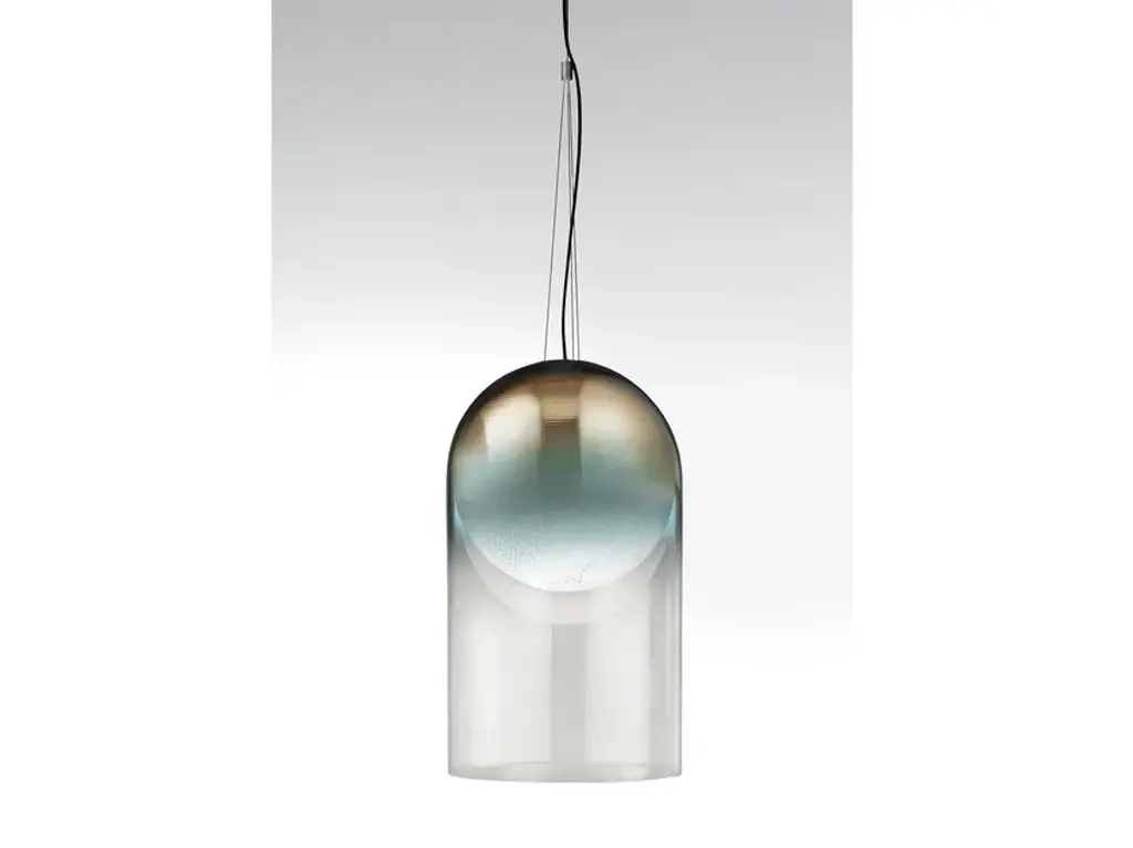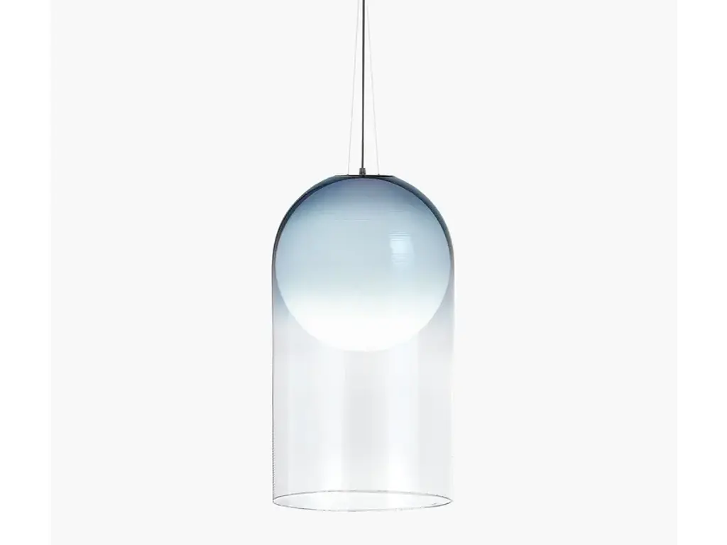 Muna is a pendant lamp that is born in an unusual way, from the fusion of white and crystal, obtaining a "poriferous" surface with a strong textured look. A further cover is made with borosilicate glass, another novelty in this type of glass, which with the shade of intense blue, gives the lamp a true lunar appearance. It is available in two sizes.Electrical and technical characteristics4030/SP - Ø21 cmLED: 7,8wLumen: 1000Temperature: 3000 KCRI>80Driver: included, not dimmable (on request dimmable with DALI and Casambi bluetooth)Voltage: 230 VEnergy class: A+IP20Certifications: CE/EAC4030/SG - Ø30 cmLED: 15,5wLumen: 2000Temperature: 3000 KCRI>80Driver: included, not dimmable (on request dimmable with DALI and Casambi bluetooth)Voltage: 230 VEnergy class: A+IP20Certifications: CE/EAC