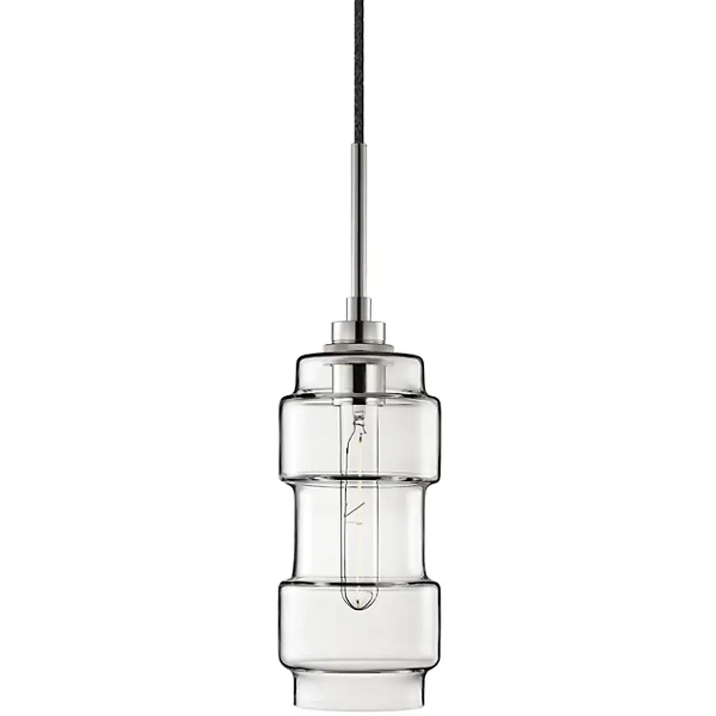 Jeremy Pyles masters modern-contemporary lighting in a small package. The Niche Muralla Pendant's form rotates from narrow to wide, from the top to the bottom of the glass shade. The handblown shade is available in an offering of moody colors, like cool grey and tranquil pink. Muralla Pendant plays well in a space by itself or with a variation of pendants. The modern-contemporary pendant is a great addition for residential or commercial space.