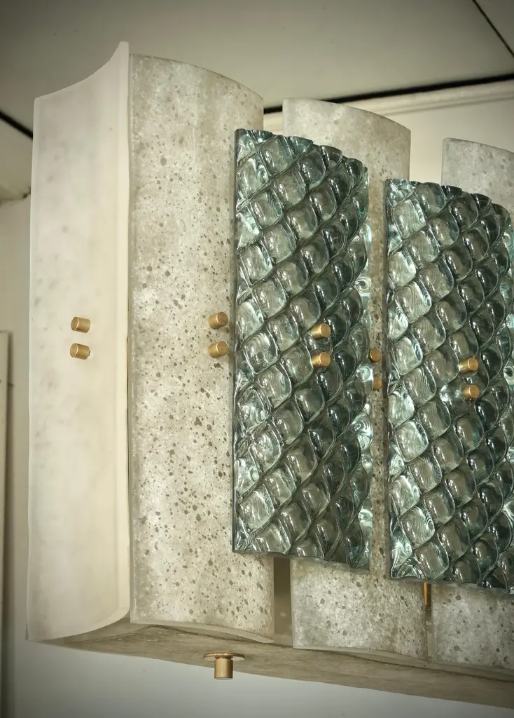 Murano Art Glass Rectangular Mid-Century Chandelier And Pendant, 1970