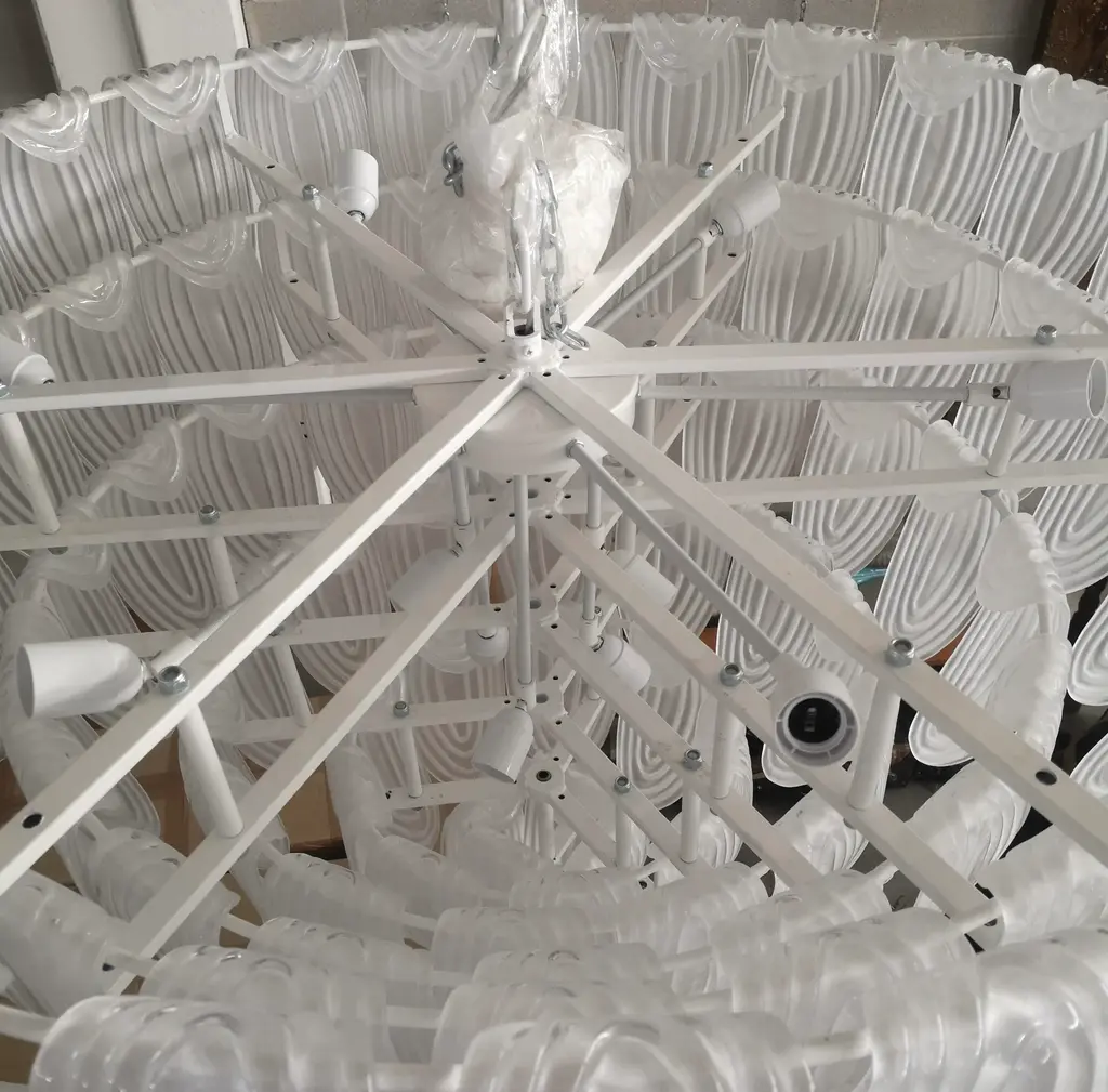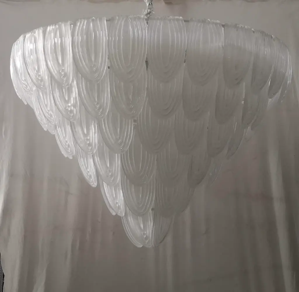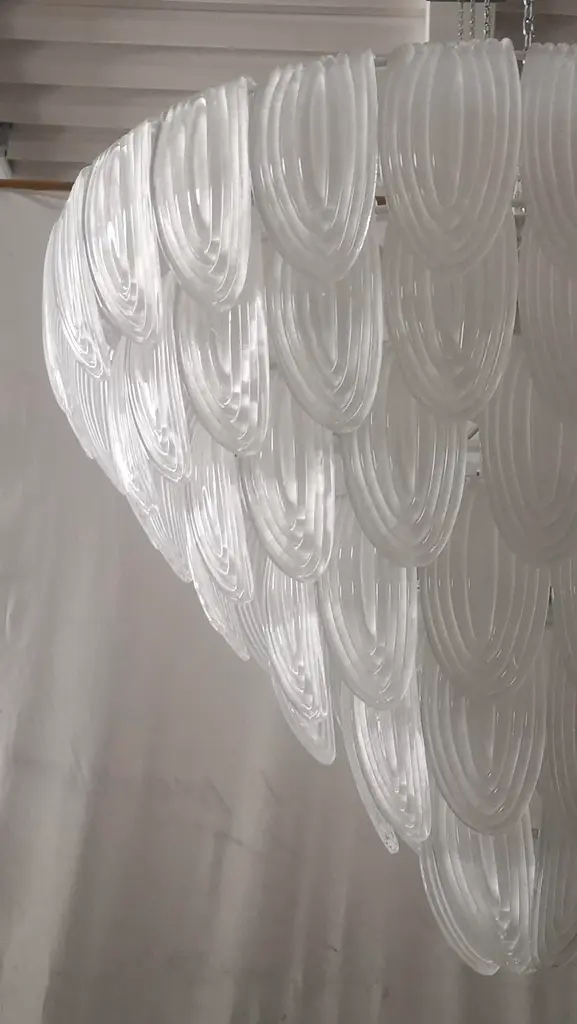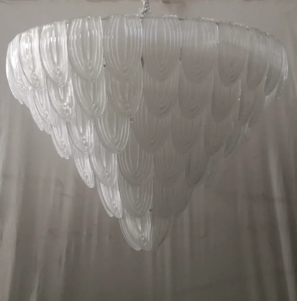 Murano Art Glass Round Transparent, White Color Chandeliers And Pendant