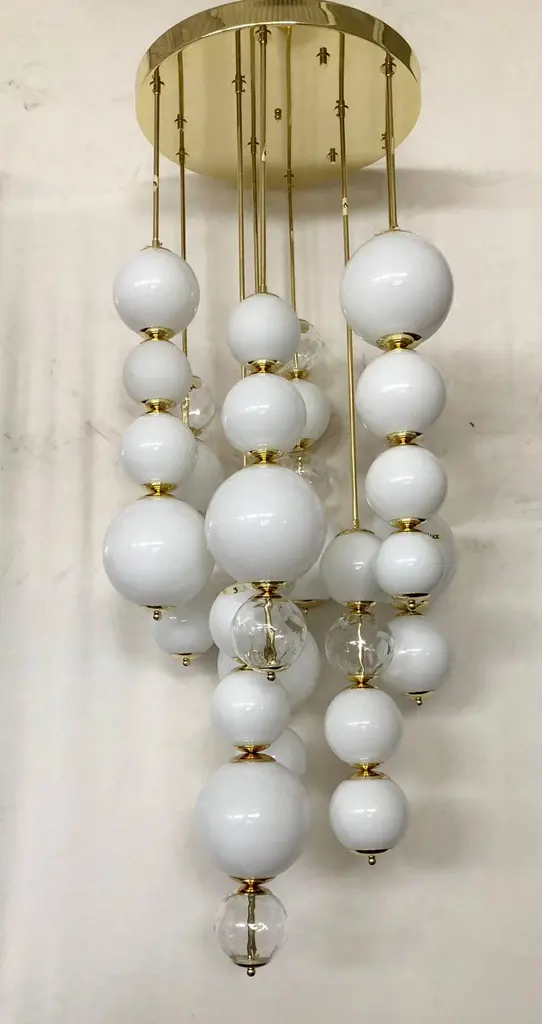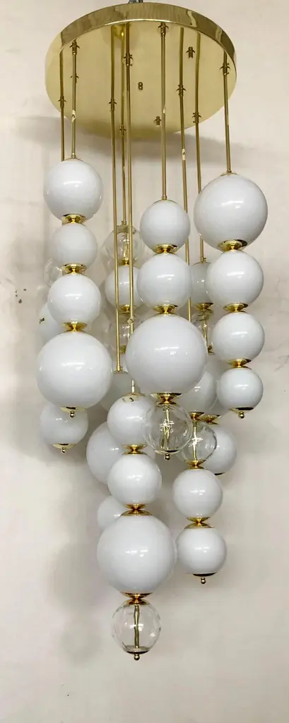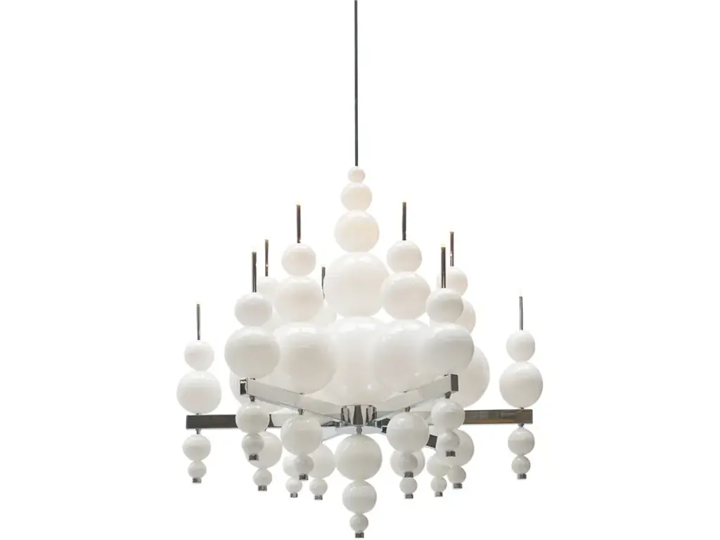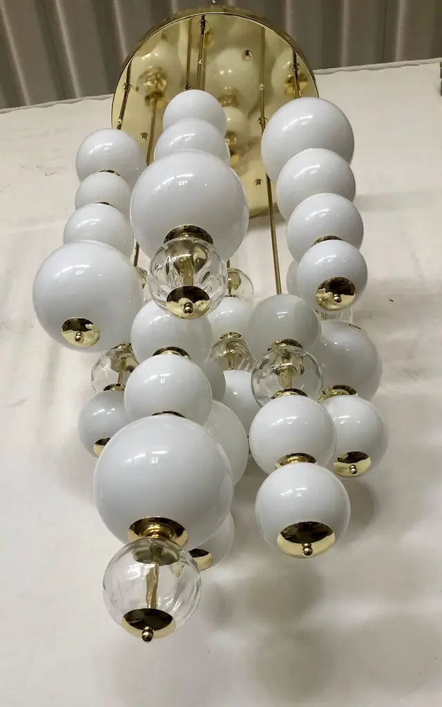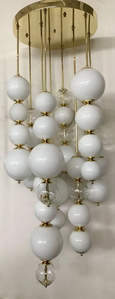 Murano Art Glass Round White Color And Transparent Chandelier And Pendant, 1980