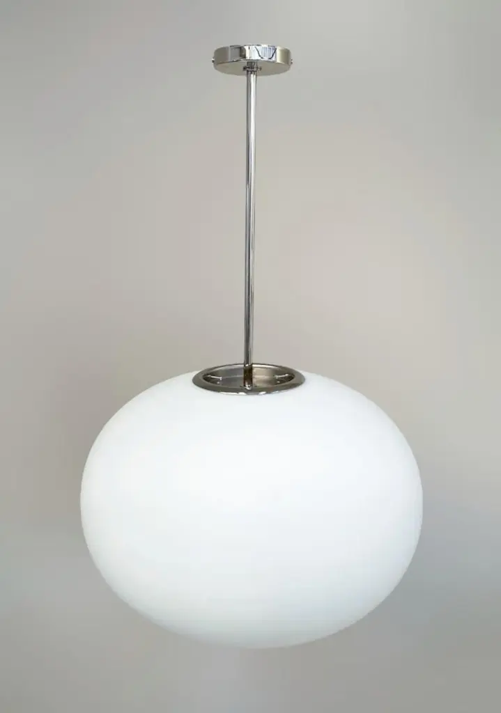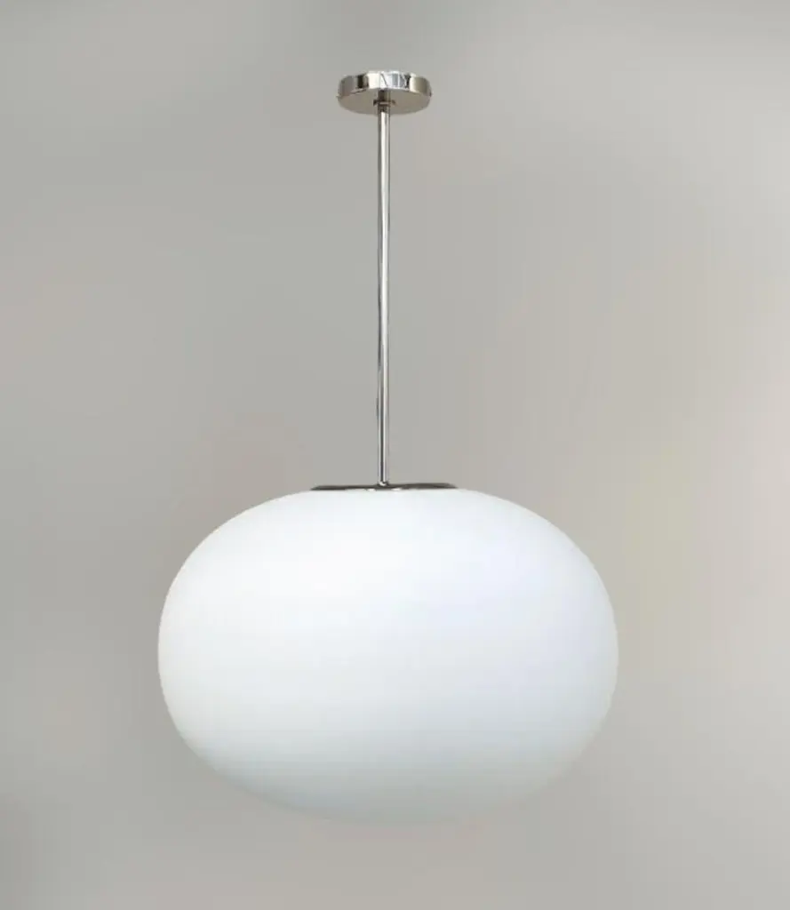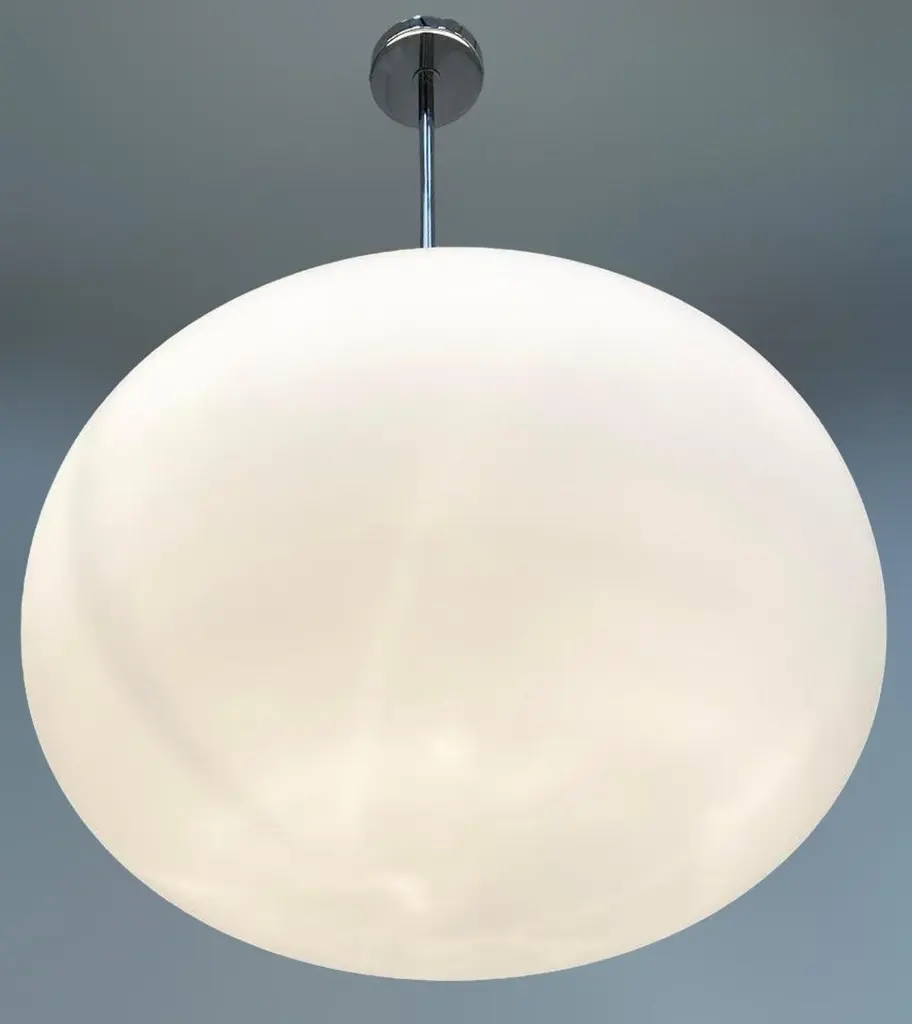 Italian pendant with a large matte white Murano pebble glass shade mounted on brass frame / designed by Fabio Bergomi for Fabio Ltd / Made in ItalyMeasures: Diameter 23.5 inches, height 35.5 inches including rod and canopy1 light / E26 or E27 type / max 60WOrder only / this item ships from ItalyOrder reference #: FABIOLTD C786 MATTEThe listed price applies to the following finishes : Bronzed, Polished Chrome, Satin Chrome, Polished Nickel, Satin Nickel, Polished Black Nickel, Satin Black Nickel, Polished Copper, Satin CopperOther finishes are available : Unlacquered Natural Brass, Unlacquered Polished Brass, Lacquered Polished Brass, Lacquered Satin Brass